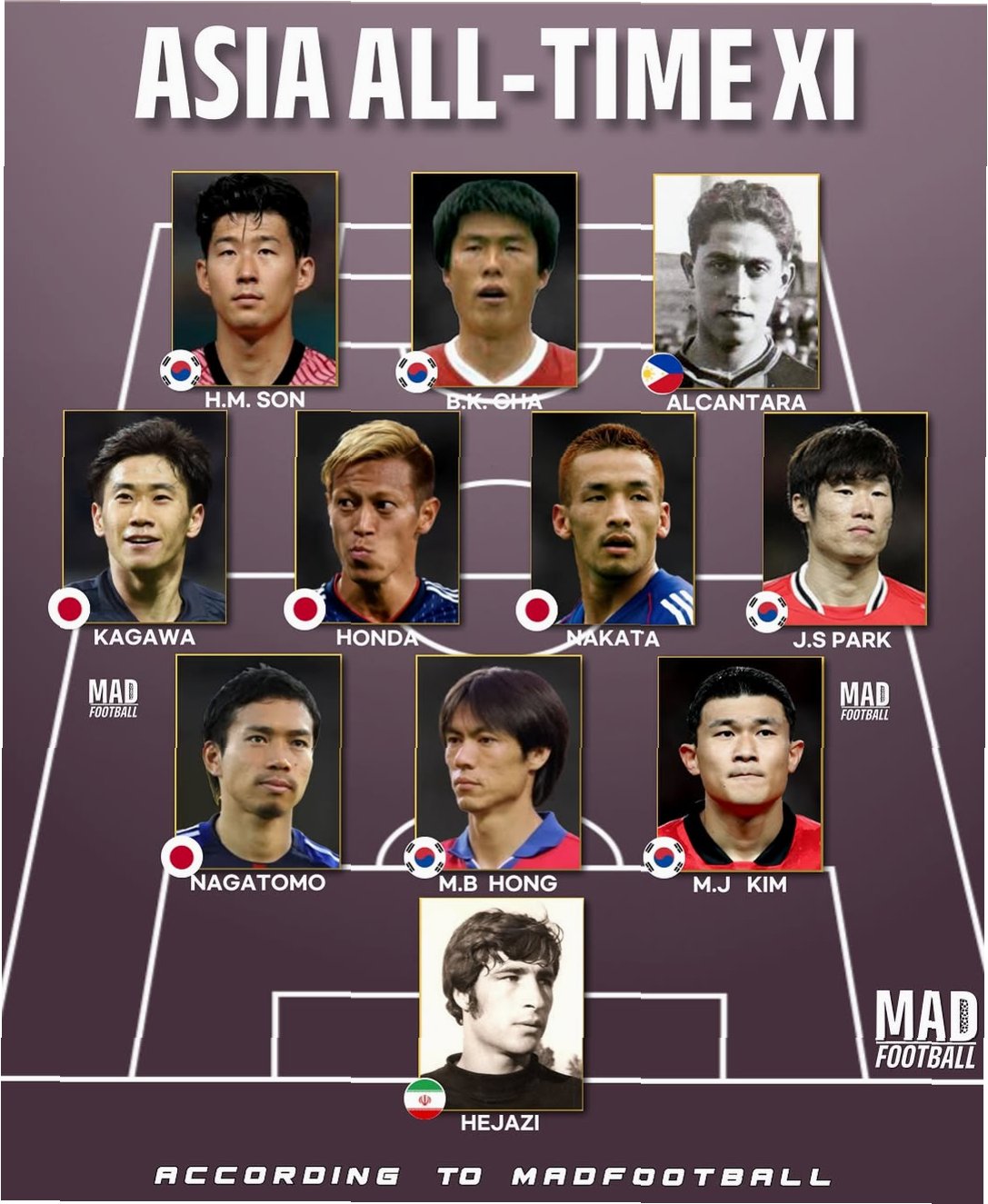 아시아 축구, 역대 최고의 선수들을 만나다글로벌 축구 매체 'MAD 풋볼'이 선정한 아시아 역대 축구 선수 TOP 18이 공개됐습니다. 이 명단에는 대한민국을 빛낸 6명의 선수가 이름을 올렸으며, 특히 차범근, 손흥민, 박지성이 아시아 축구 역사를 새롭게 썼습니다. 아시아 축구 레전드, 그 영광의 얼굴들1위는 한국 축구의 선구자, 차범근 감독입니다. 분데스리가에서 98골을 기록하며 유럽 무대를 평정했고, UEFA컵 우승을 두 차례나 달성하며 '차붐'이라는 별명을 얻었습니다. 손흥민, 현재를 넘어선 미래2위는 현재 아시아 최고의 선수, 손흥민입니다. 토트넘 홋스퍼에서 454경기에 출전해 173골을 기록, 프리미어리그 득점왕을 차지하며 아시아 선수 최초 발롱도르 11위에 선정되는 기염을 토했습니다..