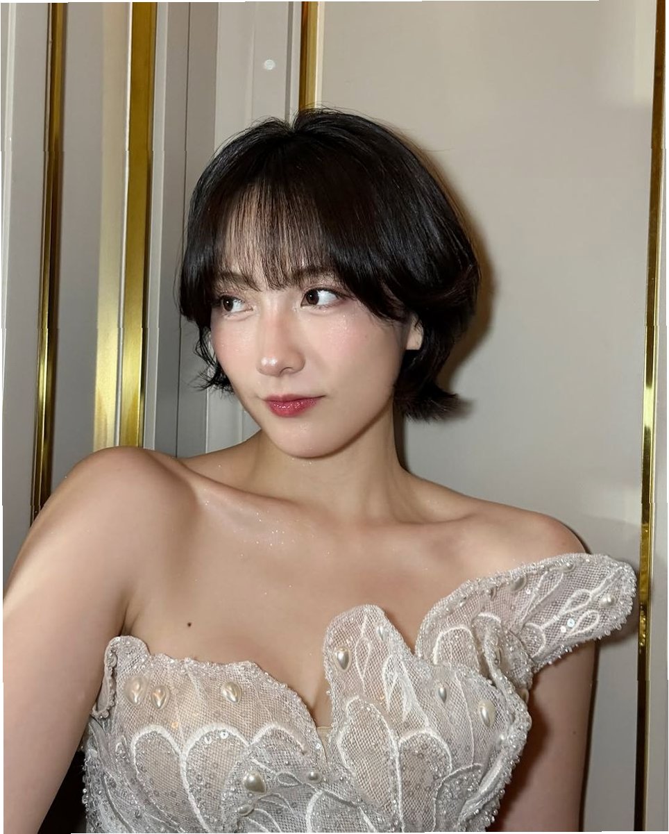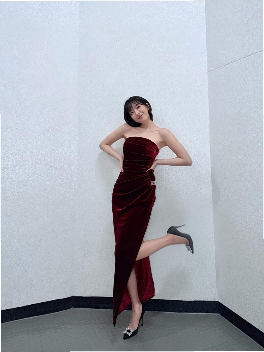 강지영이 선택한 벨벳 소재의 버건디 컬러 오프숄더 드레스는 그녀의 아름다움을 극대화했습니다. 벨벳 특유의 고급스러움과 버건디 컬러의 깊이감이 어우러져 강지영만의 고혹적인 분위기를 연출했습니다. 드레스는 그녀의 쇄골 라인을 드러내어 여성스러움을 강조하는 동시에, 세련된 짧은 헤어스타일과 심플한 주얼리로 포인트를 주어 전체적인 스타일의 완성을 더했습니다. 이러한 스타일 변신은 팬들뿐만 아니라 많은 대중들의 이목을 집중시키기에 충분했습니다.
