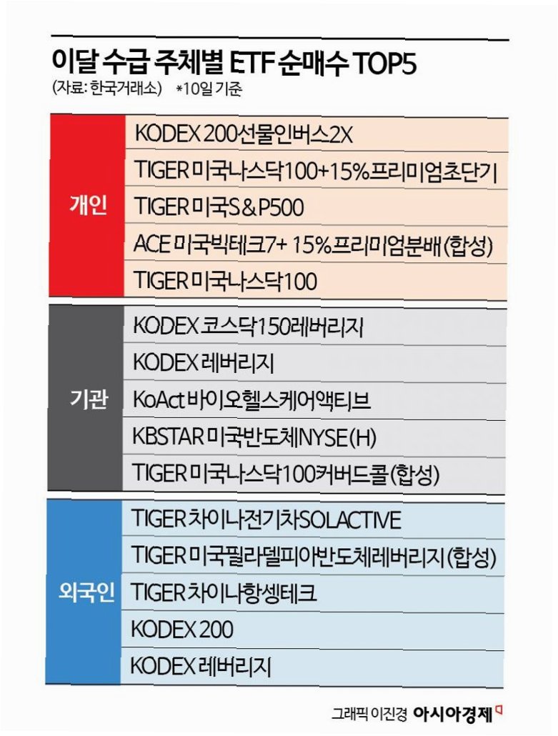 이달 들어 KODEX 레버리지에 8조 원 이상, KODEX 200선물인버스2X에 6조 원 이상이 거래되며, 두 종목의 거래대금 합계는 15조 원에 달했습니다. 이는 개인 투자자들이 시장의 변동성에 대한 우려를 갖고, 하락을 예상하는 투자 전략을 펼치고 있음을 시사합니다. 특히, KODEX 레버리지는 6월부터 3개월 연속 10조 원 이상의 거래대금을 기록하며, 투자자들의 높은 관심을 입증했습니다. 이러한 현상은 시장의 과열을 경고하는 신호로도 해석될 수 있습니다.