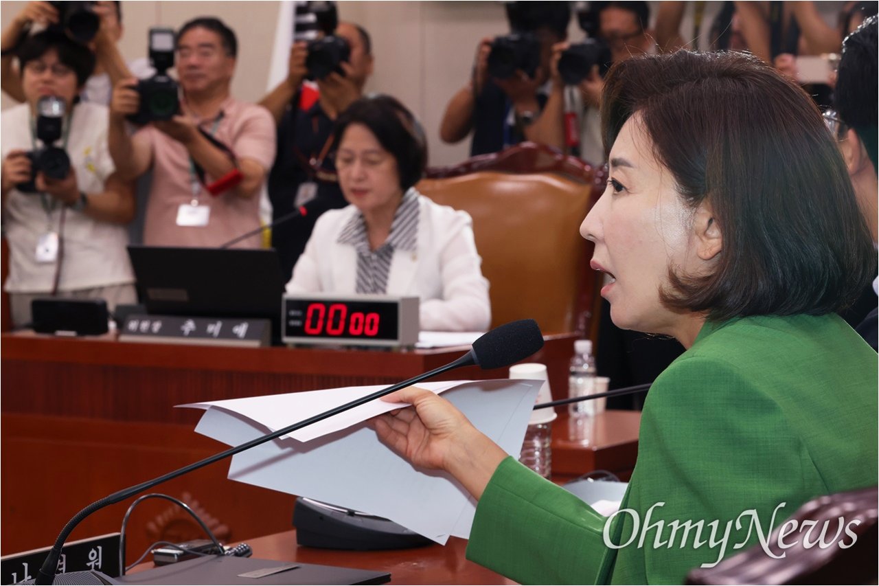 추미애 법사위원장과 나경원 의원의 날 선 대립으로 법제사법위원회 회의가 시작부터 아수라장이 되었습니다. 간사 선임 문제를 둘러싼 갈등이 표면화되며, 여야 간의 첨예한 대립이 드러났습니다. 회의는 '검찰개혁 공청회 계획서 채택의 건'을 상정하려는 추 위원장과 간사 선임을 먼저 요구하는 국민의힘 간의 의견 충돌로 시작되었습니다. 나경원 의원은 여야 합의 정신을 강조하며 간사 선임을 촉구했지만, 추 위원장은 이를 일축하며 회의 진행 순서를 따를 것을 요구했습니다.