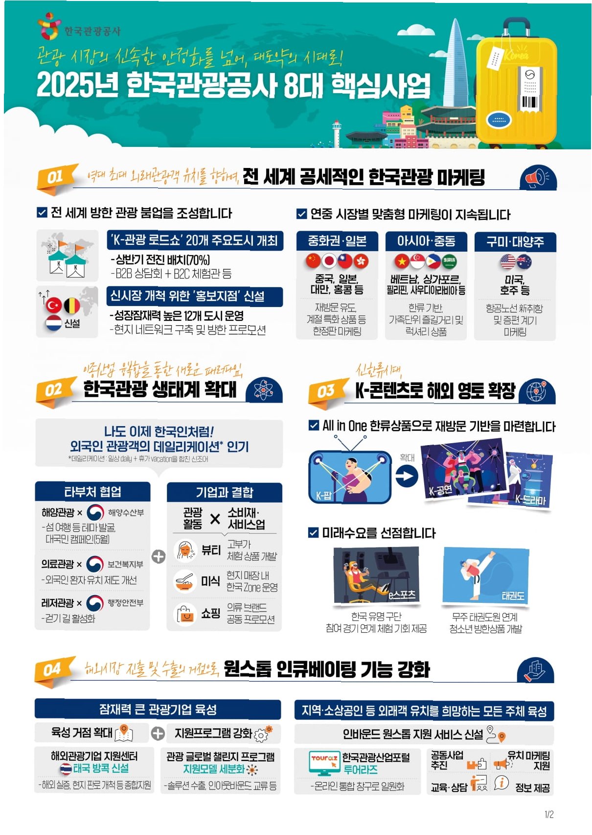 정부는 올 하반기부터 중국 단체관광객 대상 비자 면제를 추진하겠다고 밝혔습니다. 이는 한한령 이후 7년 만의 실질적인 ‘해제’ 조치로, 관광업계는 다시 한번 '중국 특수'의 재현을 고대하고 있습니다. 관광업계 관계자는 ‘한중 관계가 안정을 찾으며 면세, 의료관광, 숙박 등 연관 산업에도 확산 효과가 기대된다’고 밝혔습니다. 이러한 흐름은 과거와 같은 오프라인 단체관광에서 벗어나, MZ세대를 타깃으로 한 디지털 중심의 전략이 필요할 것입니다.