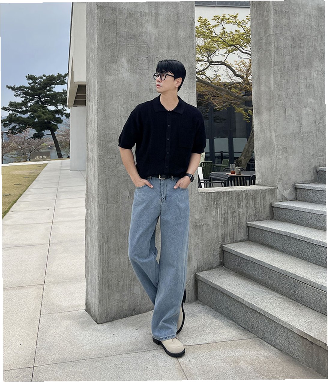 김우빈은 네이비 컬러의 케이블 니트 폴로 셔츠와 화이트 팬츠를 매치하여 산뜻하면서도 세련된 여름 스타일을 완성했습니다. 상·하의의 뚜렷한 색 대비는 전체적인 비율을 돋보이게 했으며, 니트의 패턴은 캐주얼한 분위기 속에서도 단정함을 유지했습니다. 특히, 허리선을 살린 실루엣은 다리 라인을 길어 보이게 해 전체적으로 댄디한 느낌을 한층 부각시켰습니다. 이처럼 기본적인 아이템들을 활용하여 훌륭한 스타일을 연출하는 김우빈의 패션 감각은 많은 이들에게 영감을 주고 있습니다.