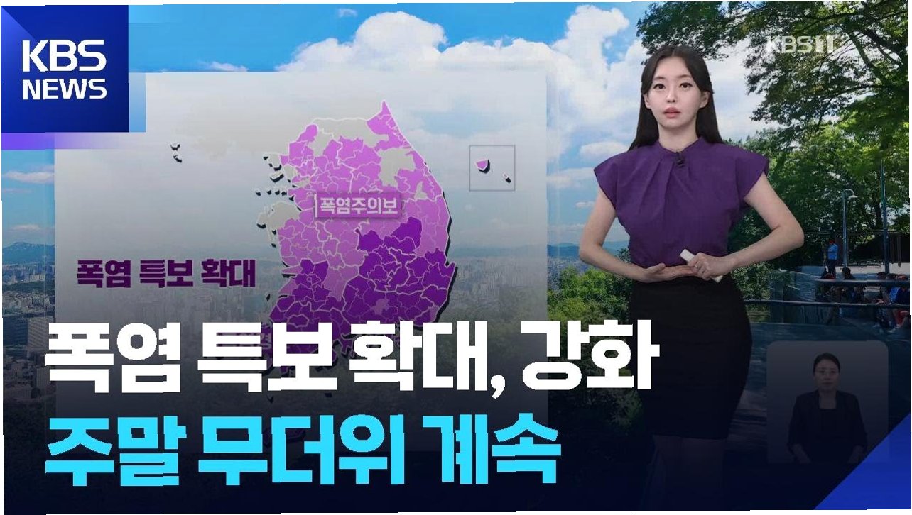전국적인 폭염특보 강화, 수도권 비 소식에도 꺾이지 않는 더위, 30도를 웃도는 기온과 열대야 지속 가능성, 건강 관리에 대한 각별한 주의 필요.