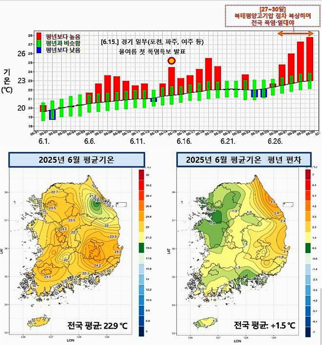전국적인 폭염특보 강화, 수도권 비 소식에도 꺾이지 않는 더위, 30도를 웃도는 기온과 열대야 지속 가능성, 건강 관리에 대한 각별한 주의 필요.