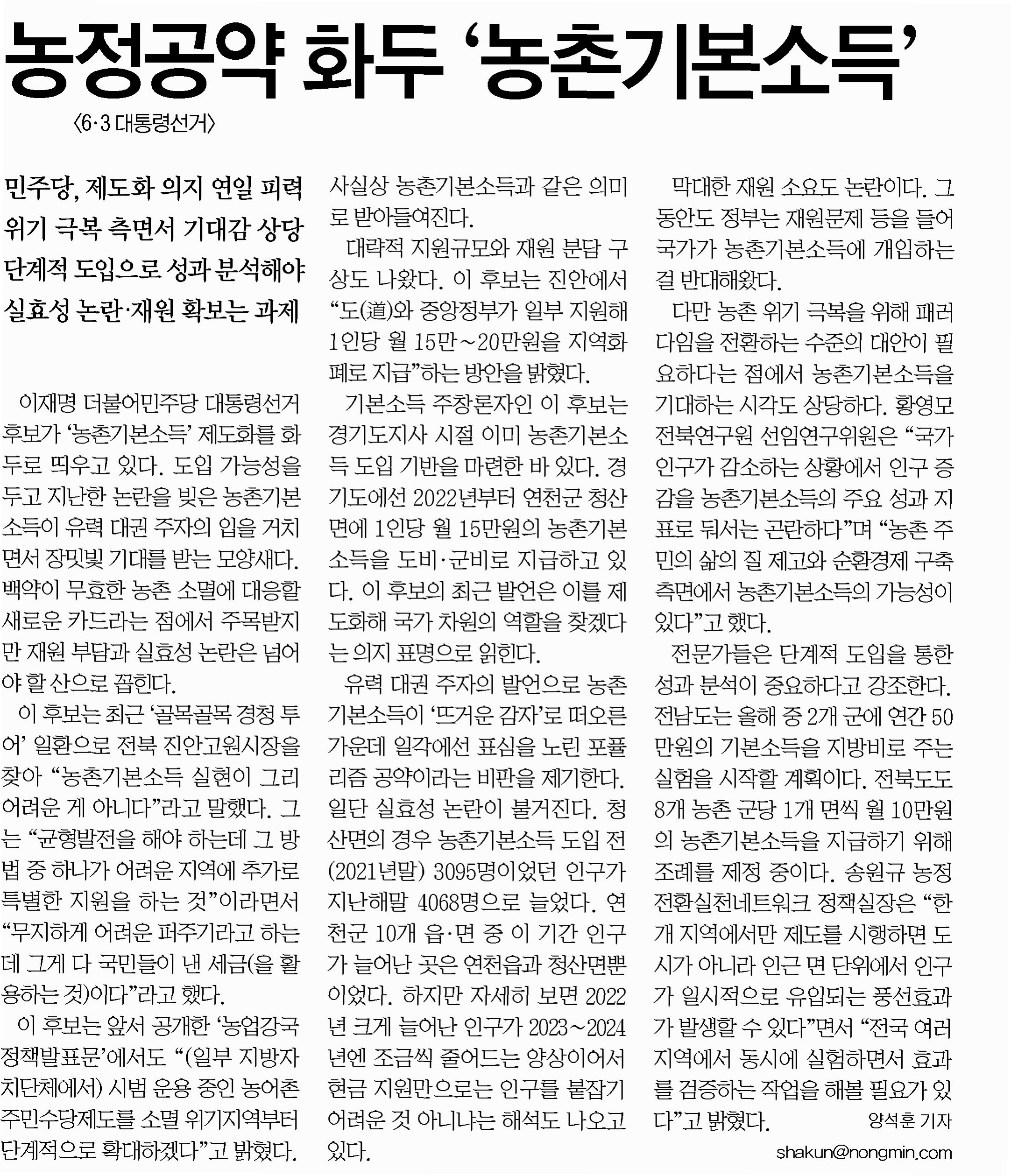 이번 사건은 농촌 경제의 지속 가능한 발전을 위한 투자의 중요성을 강조합니다농촌기본소득 사업과 같은 정책은 단순히 단기적인 지원을 넘어, 지역 사회의 장기적인 성장과 발전을 위한 기반을 마련합니다. 이러한 투자는 농촌의 인구 감소 문제를 해결하고, 지역 경제에 활력을 불어넣어 더 나은 미래를 만들어가는 데 기여할 것입니다.