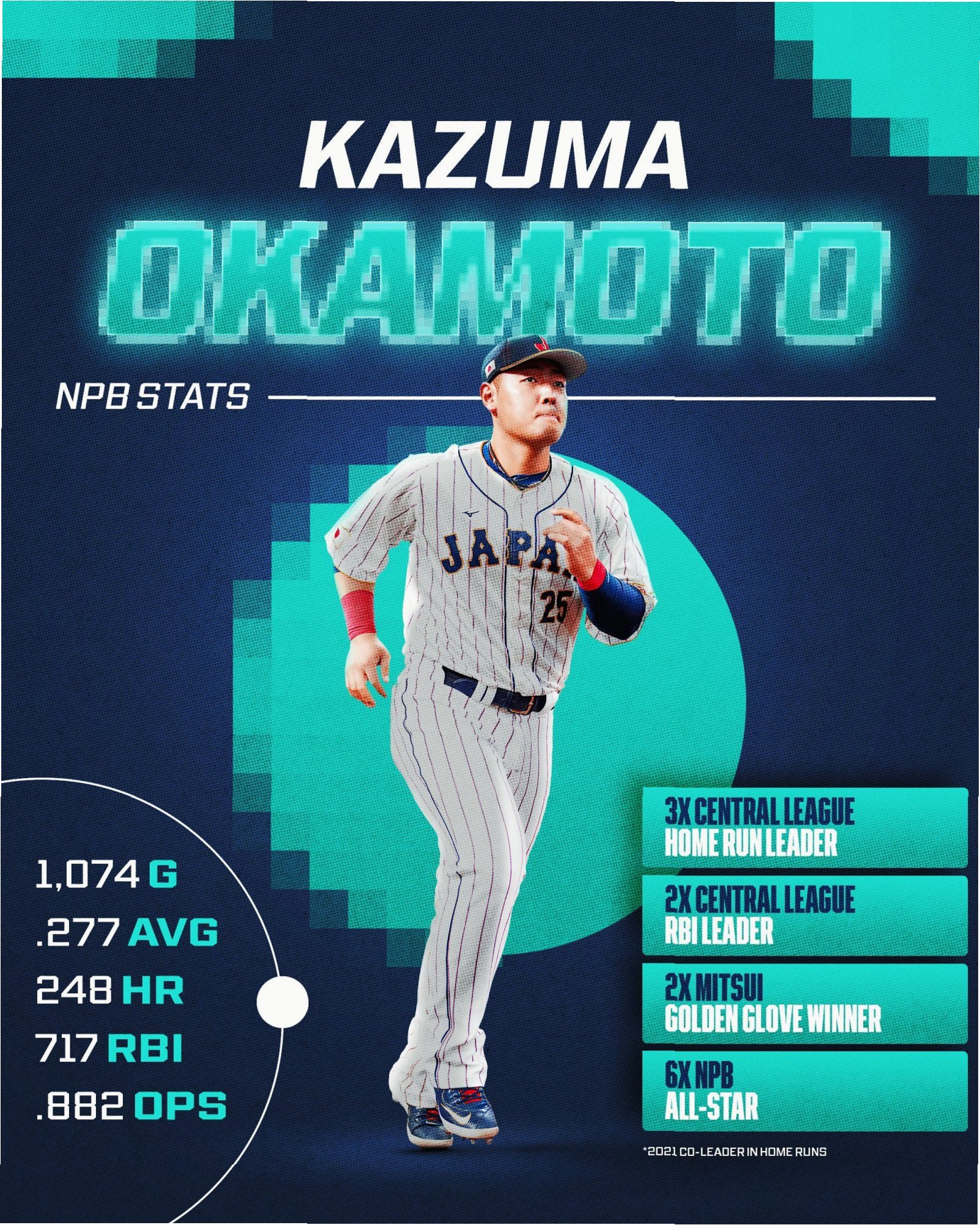 A.오카모토 카즈마는 일본 프로야구(NPB)를 대표하는 거포로, 2014년 신인 드래프트 전체 1순위로 요미우리 자이언츠에 지명되었습니다. 그는 통산 248홈런을 기록했으며, 뛰어난 타격 능력을 갖춘 3루수입니다.