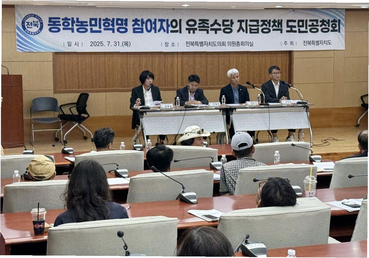 전북도가 동학농민혁명 참여자 유족에게 지급할 수당과 관련하여 도민 공청회를 개최했지만, 유족들의 거센 반발에 직면했습니다. 유족들은 연 50만원 지급 계획에 대해 강하게 반발하며, “애들 장난도 아니고”, “차라리 주지 말라”는 격한 반응을 보였습니다. 이들은 월 10만원 지급을 요구하며, 5·18 광주민주화운동, 제주 4·3 사건 등 다른 역사적 사건과의 형평성을 문제 삼았습니다.