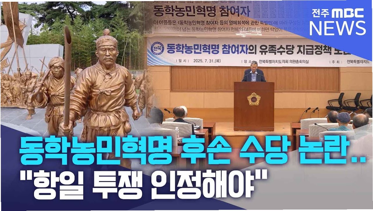전북도의 동학농민혁명 유족 수당 지급 계획이 유족들의 반발에 직면하며 논란이 일고 있습니다. 유족들은 월 10만원 지급을 요구하며, 형평성 문제를 제기했습니다. 전북도는 공청회 의견을 수렴하여 수당 지급 계획을 수정할 예정이며, 정치권과 함께 해결 방안을 모색하고 있습니다. 동학농민혁명의 역사적 가치를 인정하고 유족들의 명예를 회복하기 위한 노력이 필요합니다.