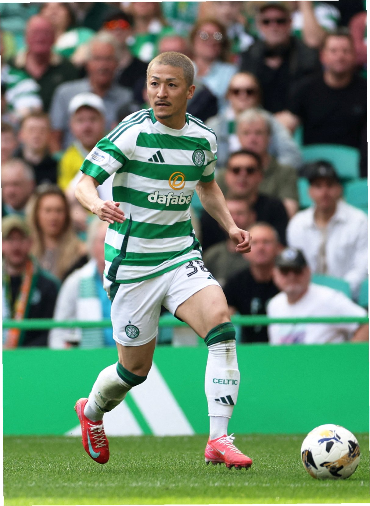 마에다 다이젠은 J리그 득점왕 출신으로 2021년 셀틱에 입단하여 팀에 빠르게 적응했다. 그는 폭발적인 스피드를 바탕으로 셀틱 공격에 활력을 불어넣었고, 지치지 않는 체력으로 팀 전술에 기여했다. 2024-2025시즌에는 득점 감각이 폭발하며 리그 16경기에서 12골 7도움을 기록, 쿄고 후루하시의 공백을 훌륭히 메웠다.