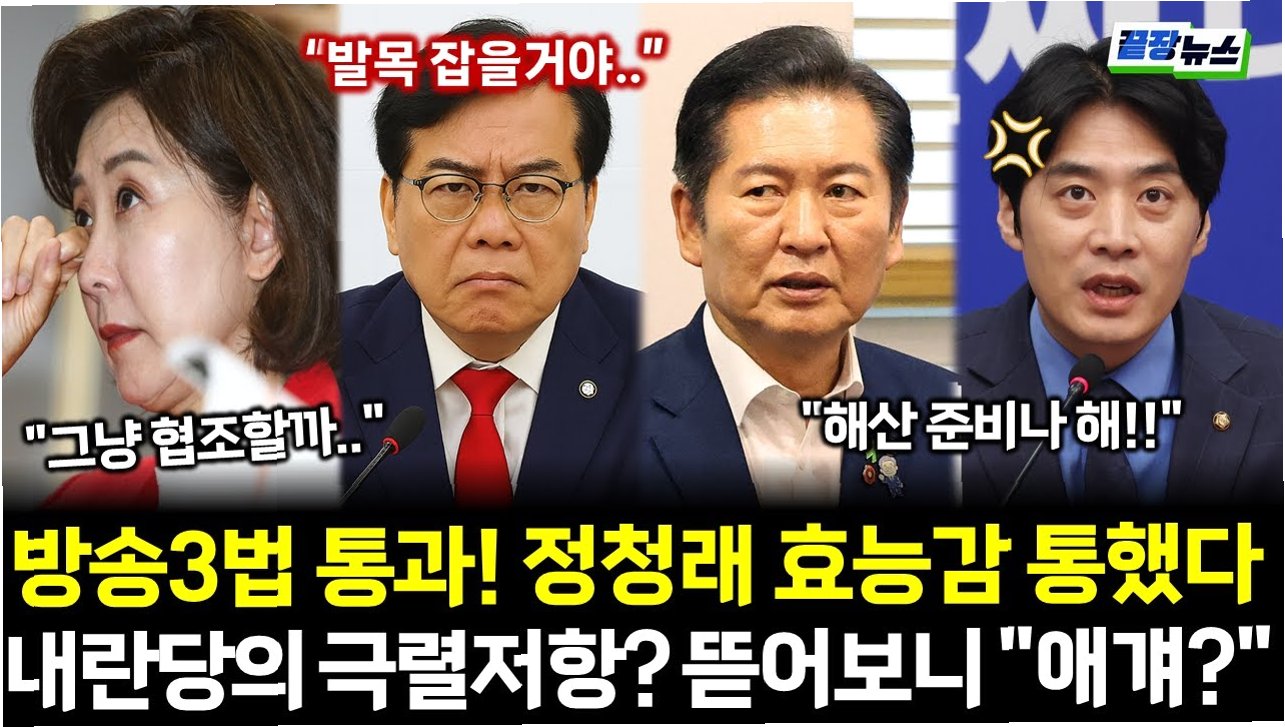 국회가 4일 본회의를 열고 방송3법 개정안(방송법·방송문화진흥회법·한국교육방송공사법 개정안)을 상정하며, 여야 간의 격렬한 대립이 시작되었습니다. 국민의힘은 해당 법안을 '방송 장악법'으로 규정하고 필리버스터(무제한 토론)에 돌입했습니다. 이에 맞서 민주당은 방송법 개정안 무제한 토론 종결동의서를 제출하며 5일 오후 표결을 예고했습니다.