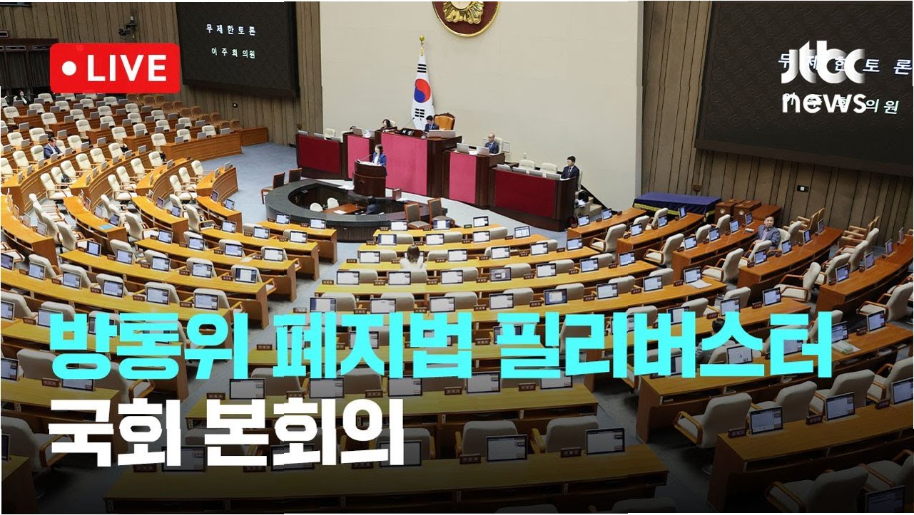 방송통신위원회 폐지 법안 통과 초읽기, 이진숙 위원장 자동 면직, 필리버스터 진행, 관련 업계 및 국민적 관심 고조, 투명하고 효율적인 운영의 중요성.