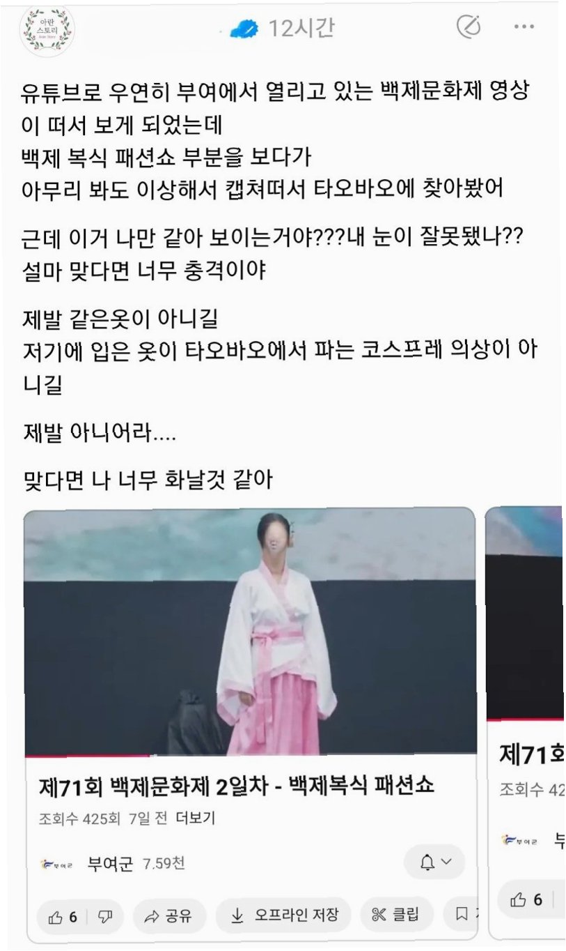 SNS를 뜨겁게 달군 소식, 바로 충남 부여에서 열린 백제문화제 '백제 복식 패션쇼'에서 중국 온라인 쇼핑몰 의상이 사용된 정황이 포착된 것입니다. 해당 소식은 빠르게 퍼져나가며, 역사 왜곡에 대한 우려와 축제 예산 관련 의혹을 동시에 불러일으켰습니다. 패션쇼에 등장한 의상이 중국의 타오바오에서 판매되는 코스프레 의상과 흡사하다는 주장이 제기되면서, 논란은 더욱 거세졌습니다. 이는 단순한 의상 문제를 넘어, 백제 문화의 정체성을 훼손하고 축제의 본질을 흐리는 행위로 비춰질 수 있기 때문입니다.