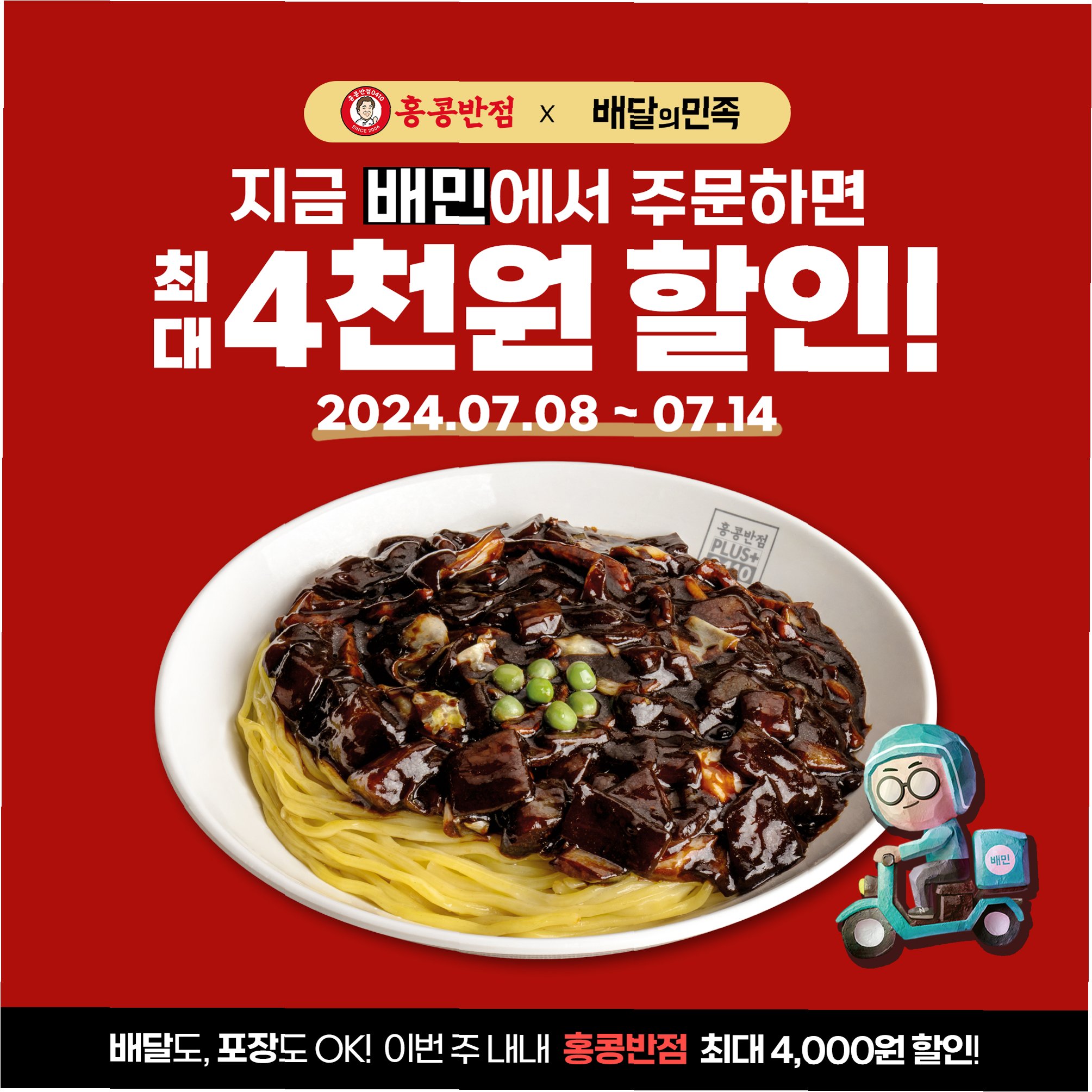 A.할인 행사는 각 브랜드별로 다르며, 홍콩반점의 짜장면 할인은 10일과 11일에 진행됩니다.