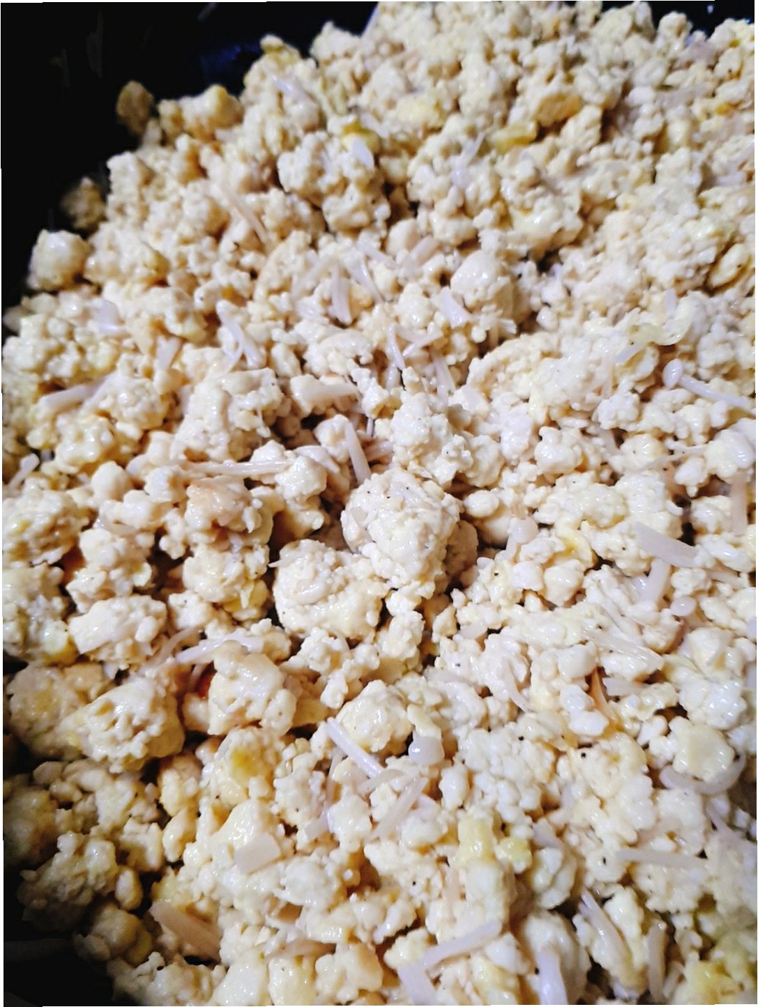 3단계: 두부 굽기 및 팽이버섯 추가
