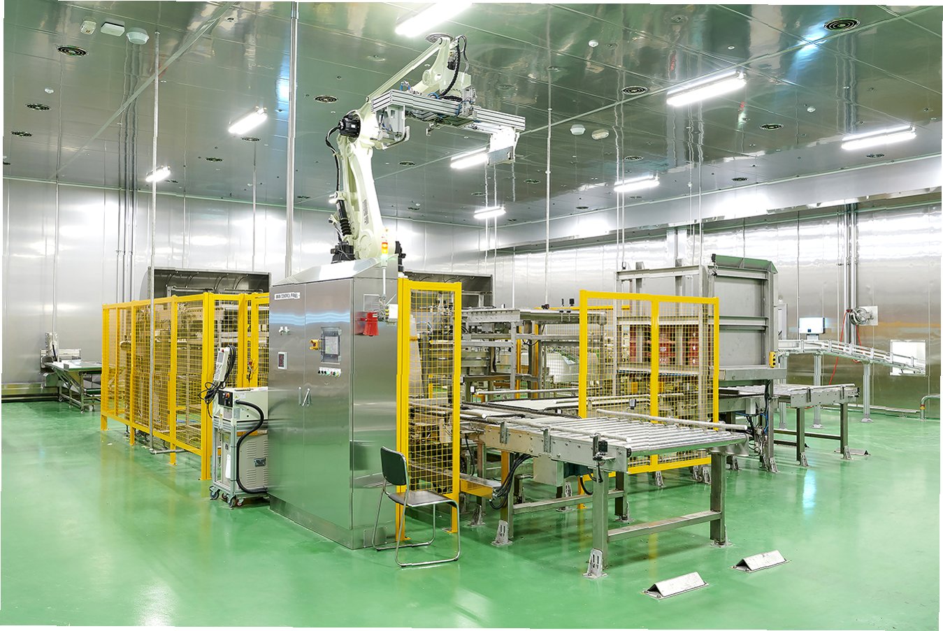공장은 원재료 보관부터 포장까지, 각 단계별로 체계적인 동선을 따라 설계되었습니다. 외부에서 들어온 재료들은 원재료저장고, 세척탈수실, 탈수냉장고, 속넣기실, 외포장실을 거치며 위생적으로 관리됩니다. 특히, 재료가 상하는 것을 막기 위해 공장 내부는 10도 이하로 유지됩니다. 캔에 들어가는 김치는 금속 검출기를 통과하여 이물질을 걸러내고, 파우치에 들어갈 김치는 속비닐 포장을 거치는 등, 위생과 품질 관리에 만전을 기하고 있습니다.