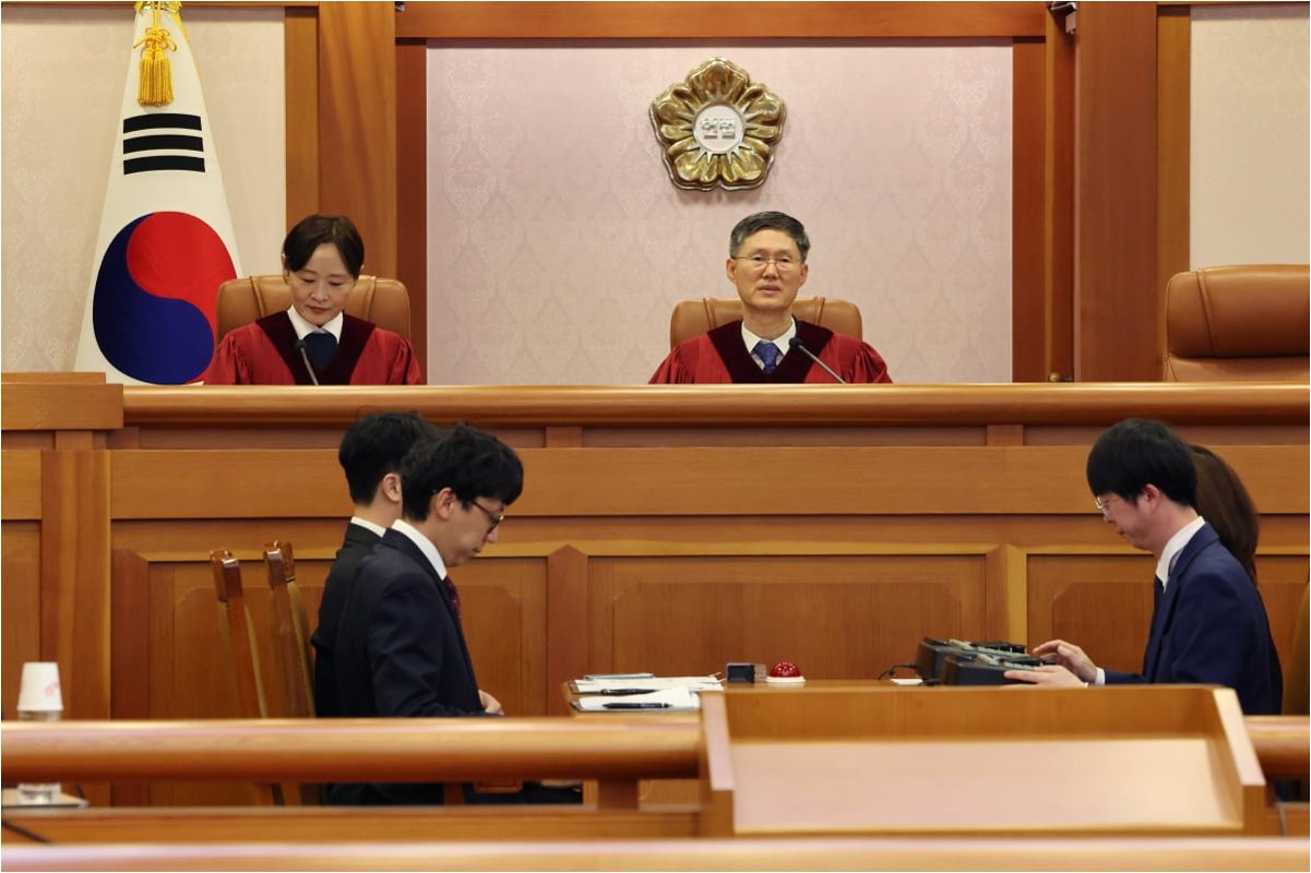 버스 정류장에서 포착된 헌법재판관