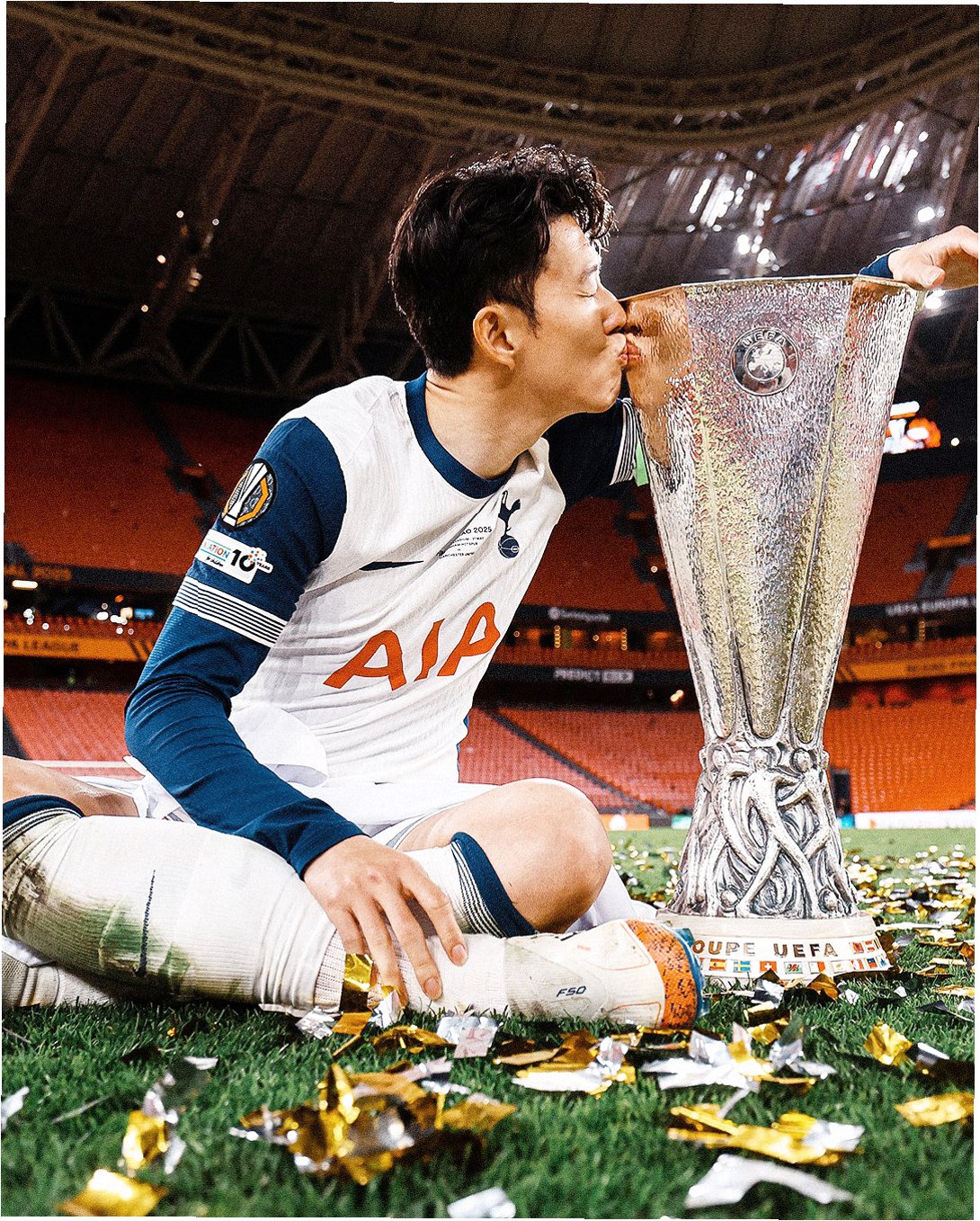 손흥민은 2024-25시즌 UEFA 유로파리그 결승전에서 맨체스터 유나이티드를 꺾고 우승을 차지하며, 오랫동안 따라다니던 '무관'의 꼬리표를 떼냈습니다. 토트넘 홋스퍼에서의 10년, 수많은 준우승의 아픔을 겪었던 손흥민에게, 이번 우승은 그 어떤 트로피보다 값진 의미를 지녔습니다. 팀 동료들과 함께 만들어낸 승리의 순간은 그에게 잊을 수 없는 감동과 기쁨을 안겨주었고, 팬들에게도 깊은 울림을 선사했습니다. 그의 헌신과 리더십은 토트넘을 유럽대항전 정상으로 이끌었고, 구단 역사에 길이 남을 '레전드'로 자리매김하게 했습니다.