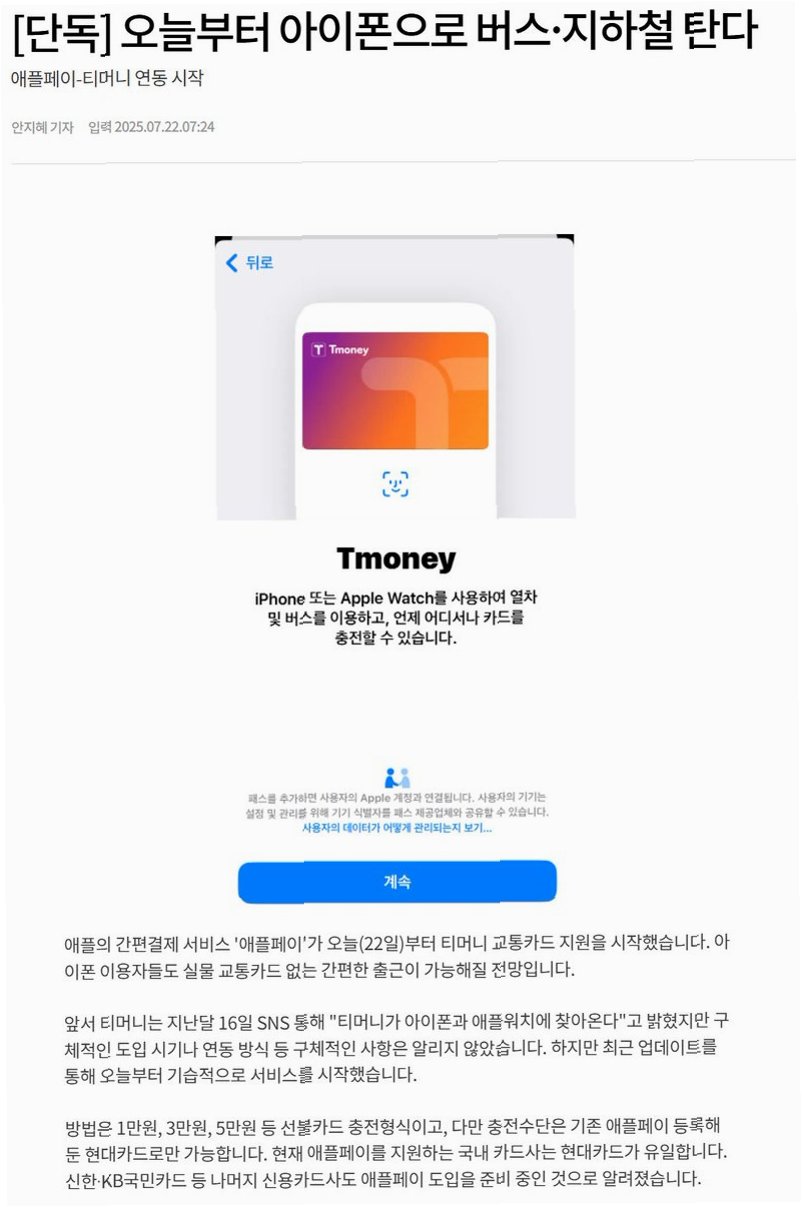 기습적인 서비스 시작: 티머니, 애플페이와 만나다