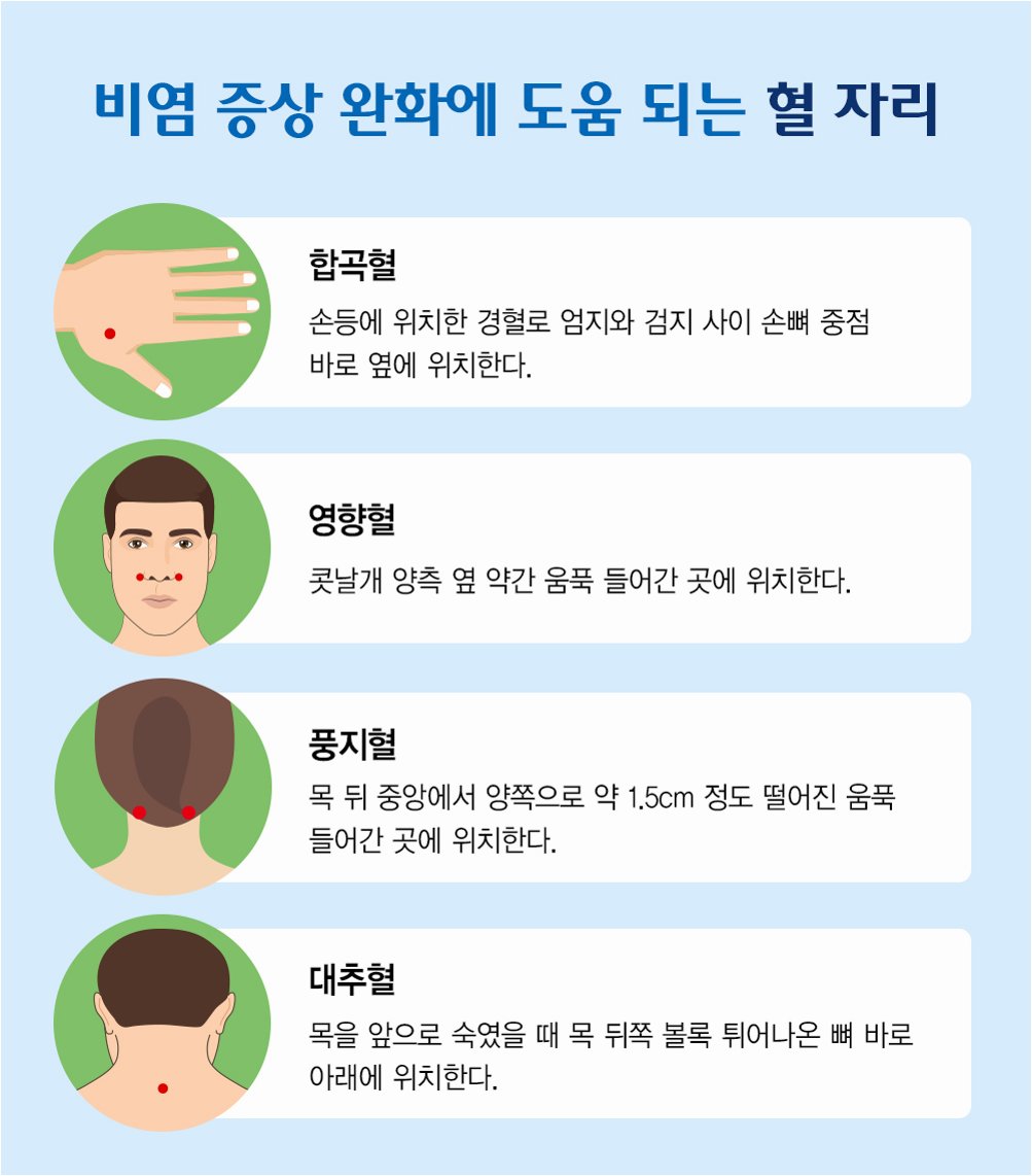 *   금연: 흡연은 코 점막을 자극하고 알레르기 증상을 악화시킬 수 있습니다. 금연을 통해 건강을 지키고 알레르기 증상을 완화할 수 있습니다.