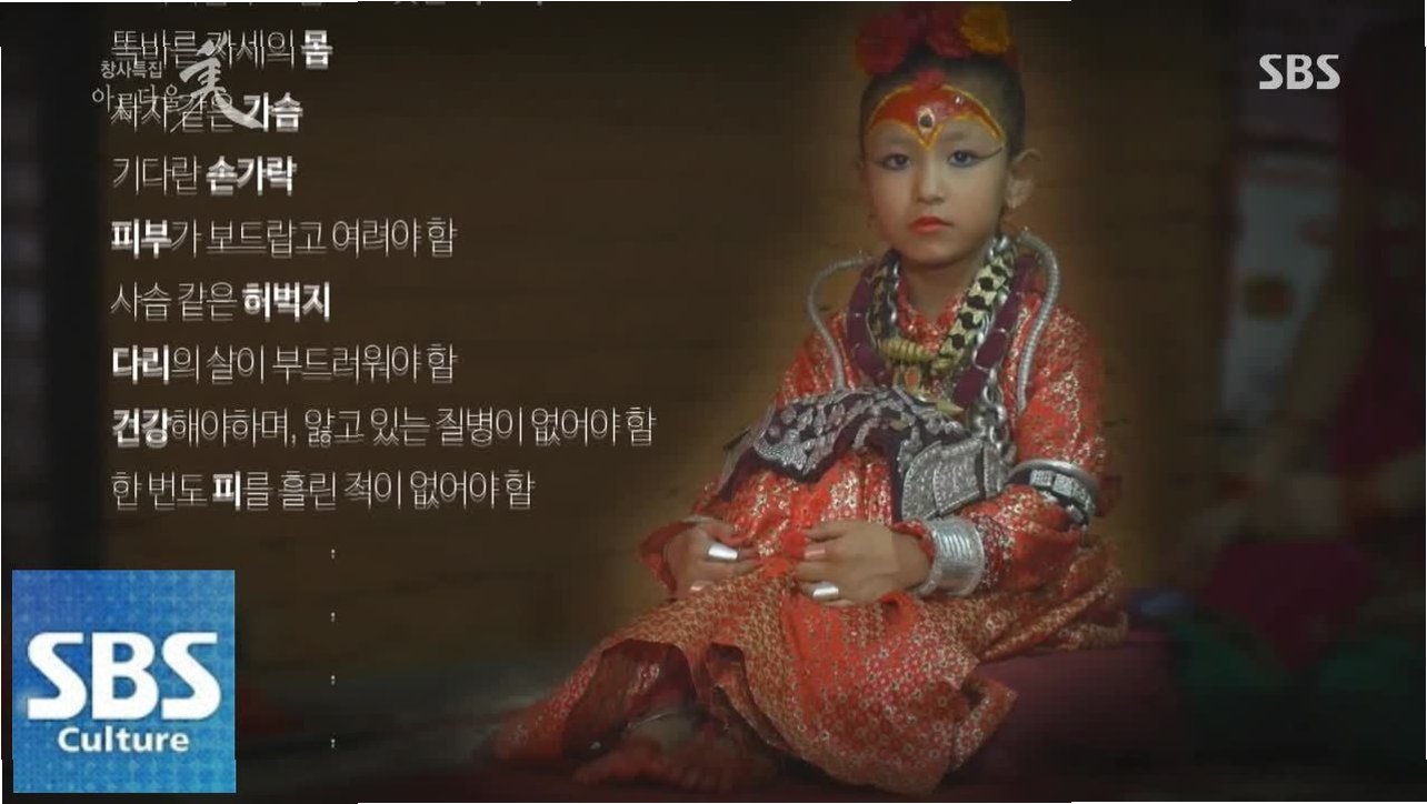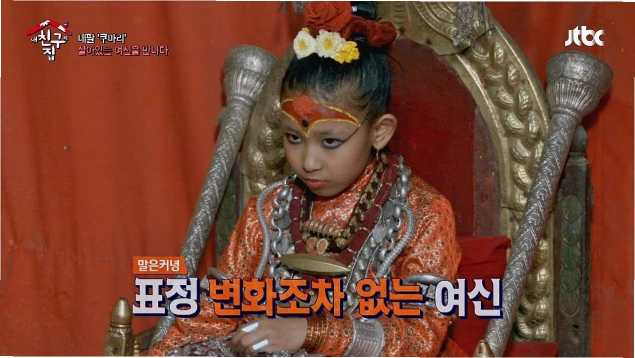 A.쿠마리는 네팔어로 '처녀'를 뜻하며, 힌두교와 불교 신자들에게 존경받는 '살아있는 여신'입니다. 2~4세 사이의 초경 전 소녀 중 엄격한 기준을 통과한 아이가 선택됩니다.