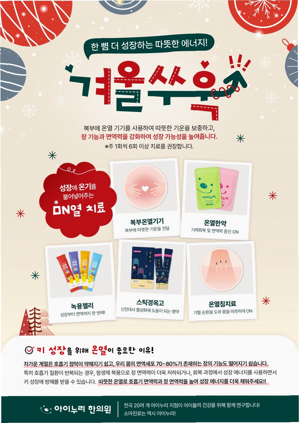 2. 맞춤 처방: 진단 결과를 바탕으로 아이의 체질과 증상에 맞는 한약 처방을 결정합니다. 한약은 면역력을 강화하고, 기혈 순환을 원활하게 하며, 전반적인 건강 상태를 개선하는 데 도움을 줍니다.