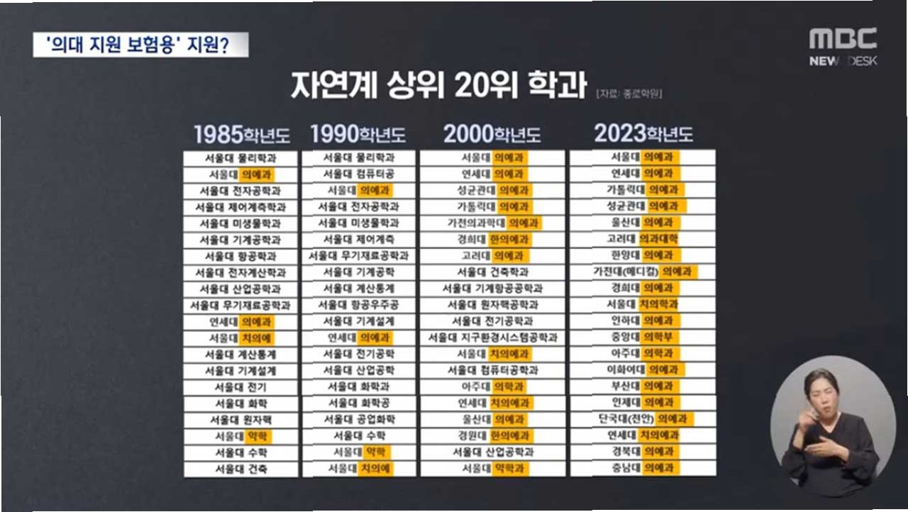 A.의사라는 직업이 높은 사회적 지위와 안정적인 수입을 보장하기 때문입니다. 또한, 과학 기술 분야에 대한 보상 체계가 상대적으로 낮아, 더 나은 조건을 찾아 의대를 선택하는 경향이 있습니다.