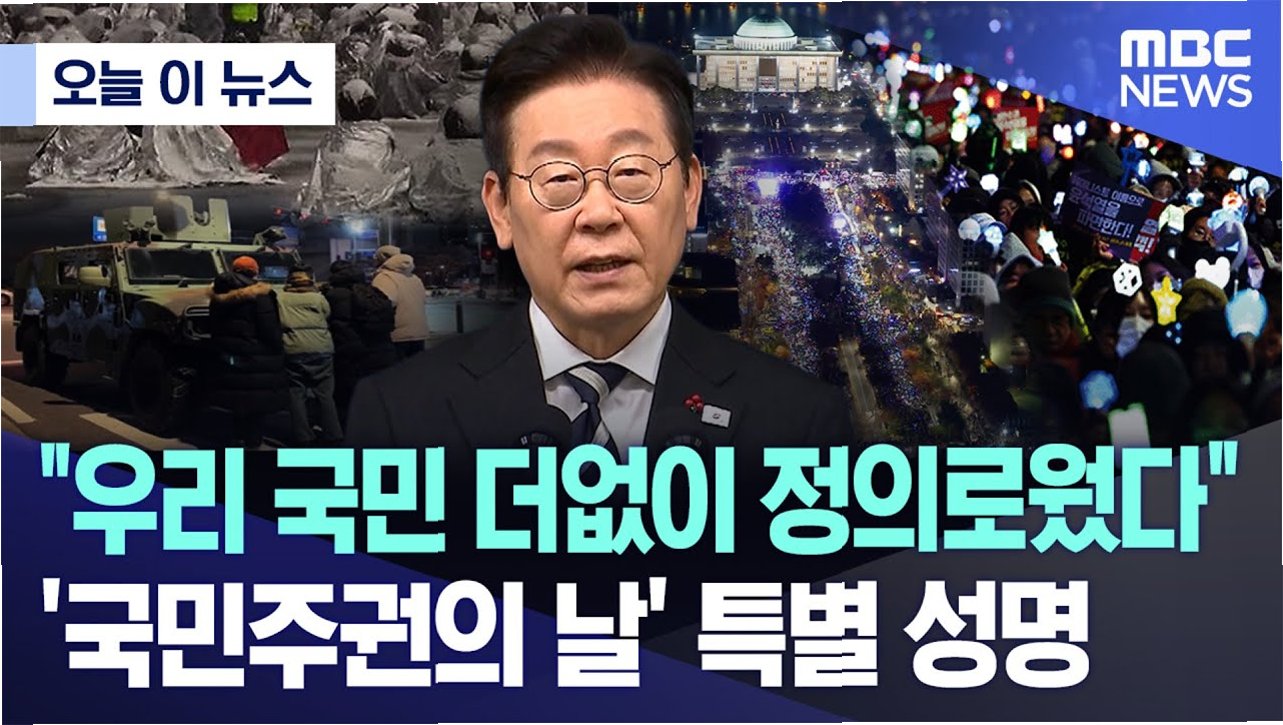 이 대통령은 “‘빛의 혁명’으로 탄생한 국민주권정부는 우리 국민의 위대한 용기와 행동을 기리기 위해 12월 3일을 ‘국민주권의 날’로 정할 것”이라고 했다.