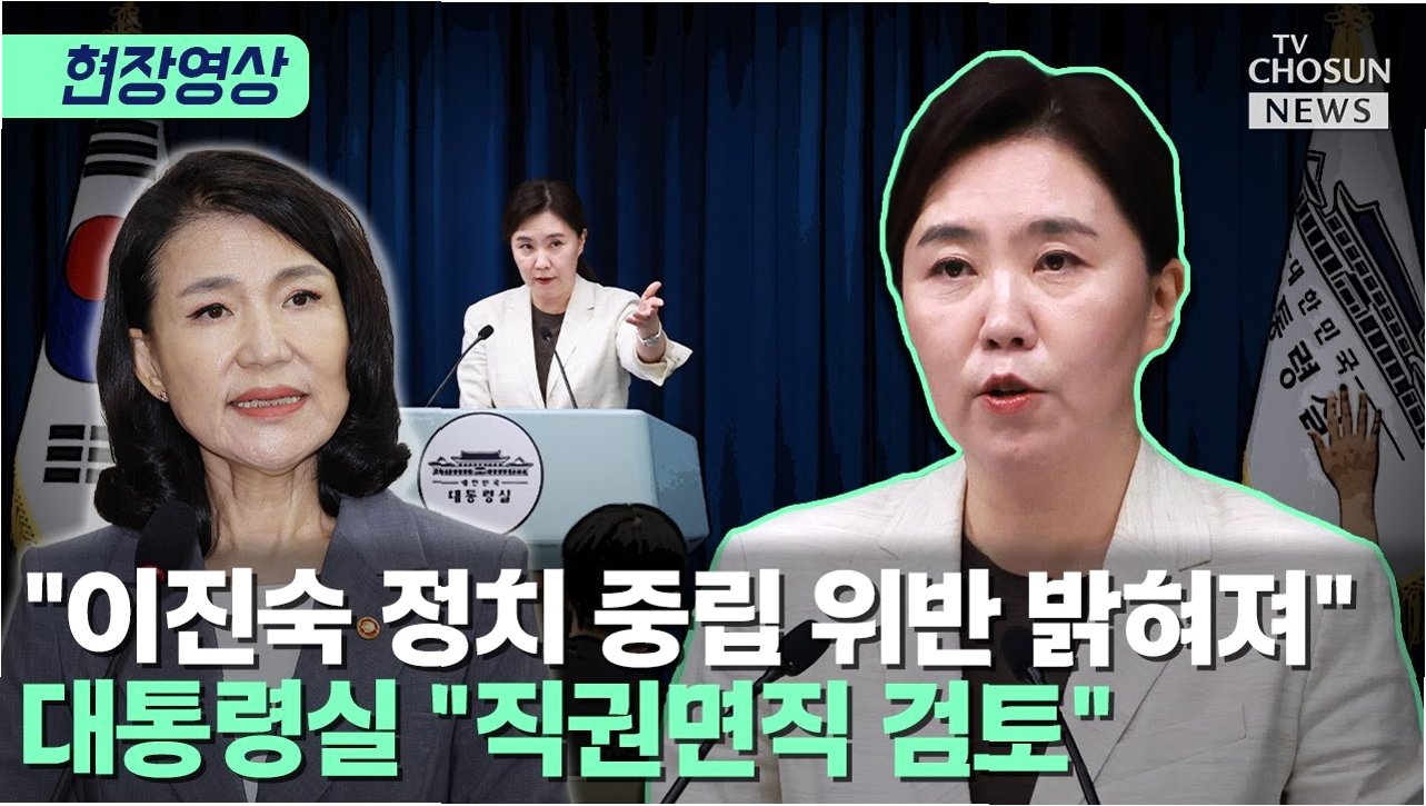대통령실이 이진숙 방송통신위원장에 대한 직권면직을 검토하고 있다는 소식이 전해졌습니다. 강유정 대통령실 대변인은 29일 용산 대통령실 브리핑을 통해 이 같은 입장을 밝혔습니다. 이는 감사원의 조사 결과와 공직자윤리위원회의 판단에 따른 것으로, 이진숙 위원장의 정치적 중립 의무 위반 및 공직자윤리법 위반 혐의가 주요 원인으로 지목되었습니다.