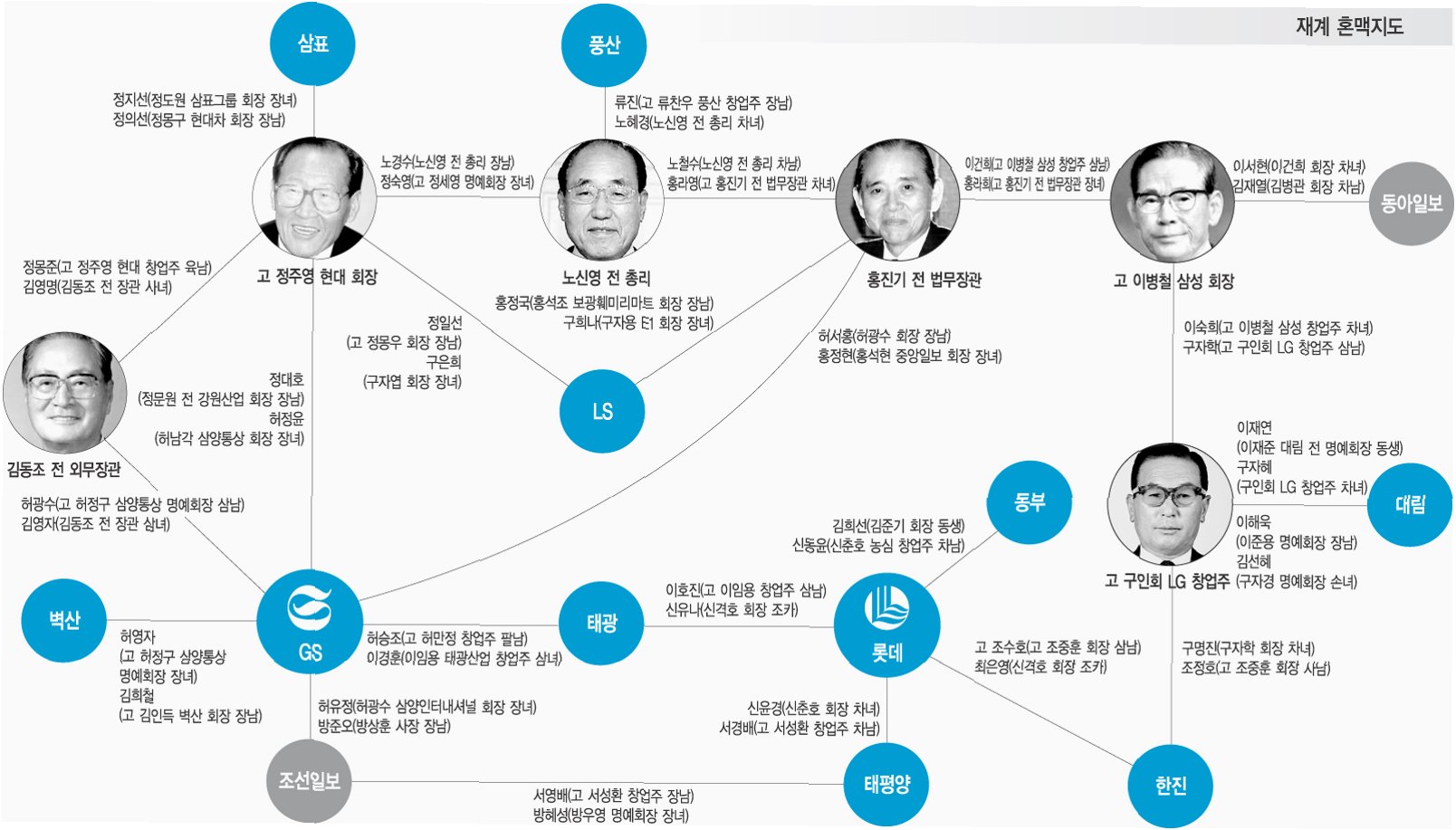 2000년 이전 재계의 정·관계 혼맥 비중은 24.2%였으나, 2000년 이후에는 7.4%로 급감했습니다. 이는 과거 정·관계와의 혼맥이 사업에 긍정적인 영향을 미쳤던 것과는 달리, 최근에는 더 큰 감시와 규제 리스크에 노출될 수 있기 때문입니다. 기업들은 변화하는 환경에 맞춰 생존 전략을 모색하고 있습니다.