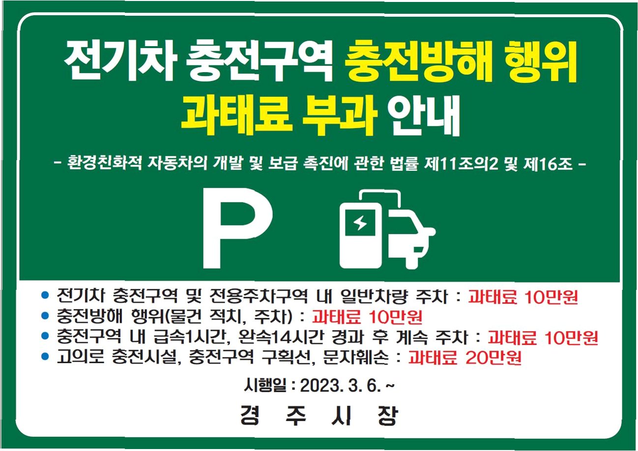 A.전기차 충전 구역은 전기차의 충전을 위한 공간으로, 일반 차량의 불법 주차는 전기차 사용자의 편의를 침해하고, 관련 법규를 위반하기 때문에 처벌받습니다.