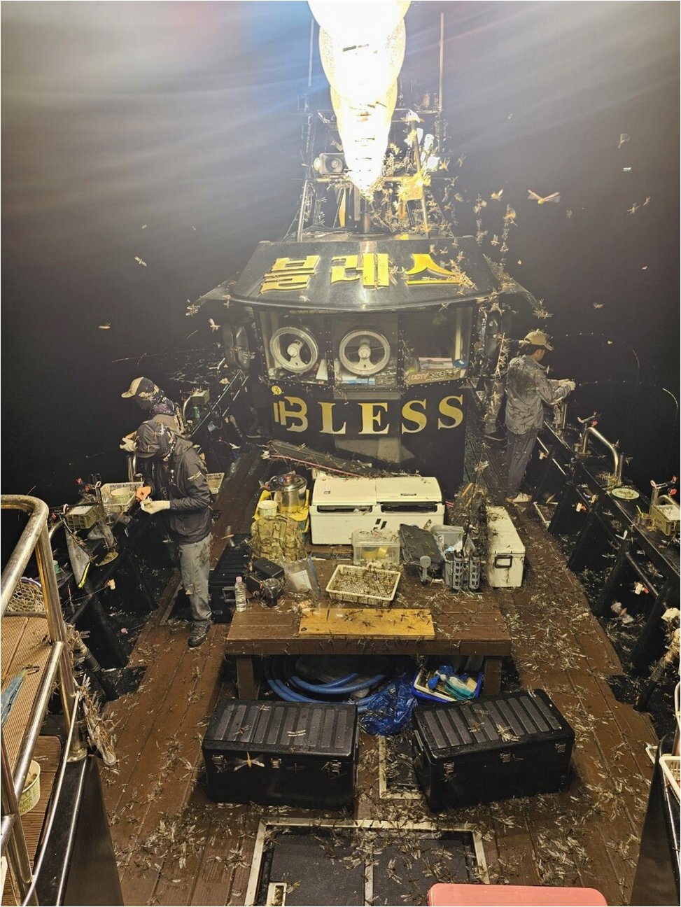 공개된 영상에는 화면이 흐릿하게 보일 정도의 잠자리 떼가 집어등을 밝힌 낚싯대에 몰려들었다낚시하는 사람의 몸에도 가득 달라붙었다잠자리 떼는 이날 3시간 넘게 낚싯배를 뒤덮었고, 선원들은 조업 활동에 어려움을 겪었다.