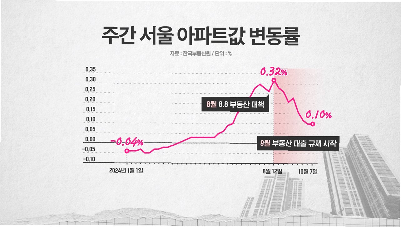 지난달 27일 정부가 가계부채를 줄이겠다면서 대출을 강하게 옥죄자 서울 집값 상승세는 시들해졌어요이재명 대통령은 이번 정책을 '맛보기'라고 표현하면서 추가적인 규제도 시사하는 등 강하게 수요를 억제한 효과가 나타나고 있는 것으로 보여요.