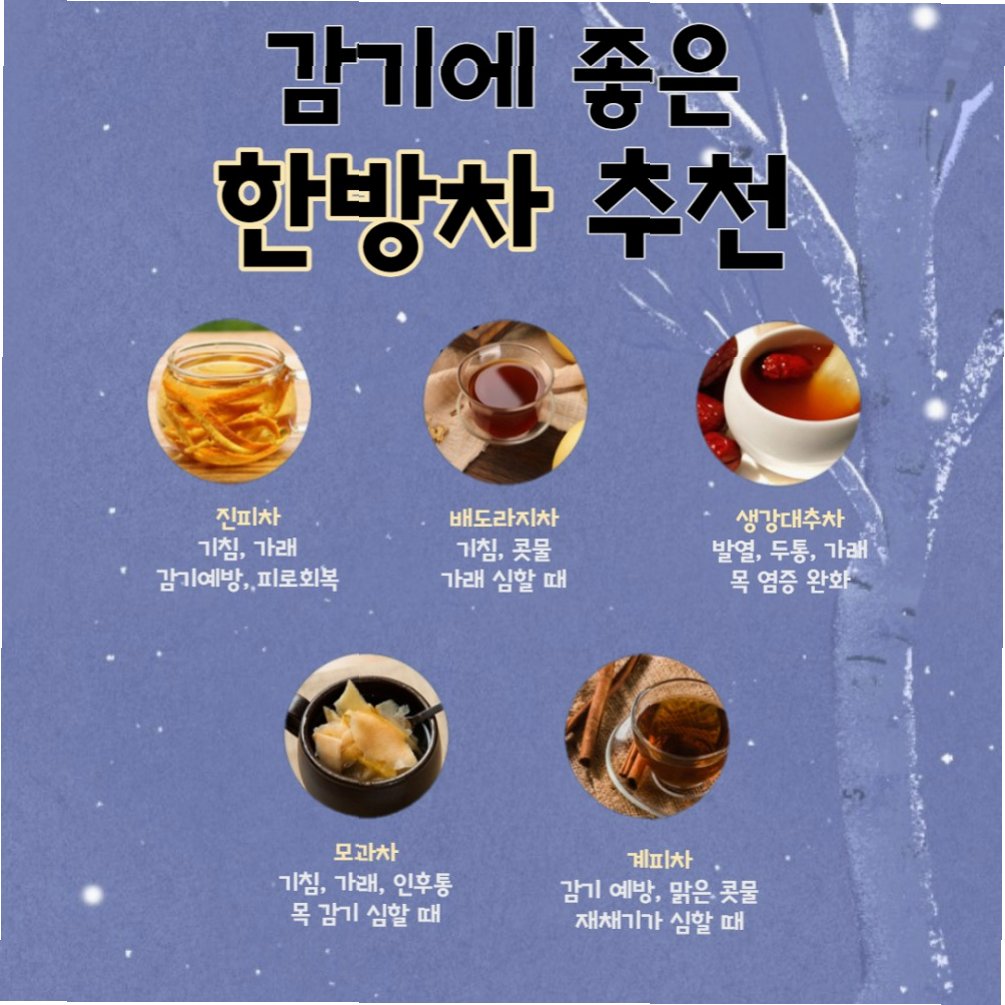 A.생강차, 꿀물, 배즙 등이 기침, 콧물 완화에 도움이 될 수 있습니다. 비타민 C가 풍부한 과일(감귤, 딸기 등)도 좋습니다.