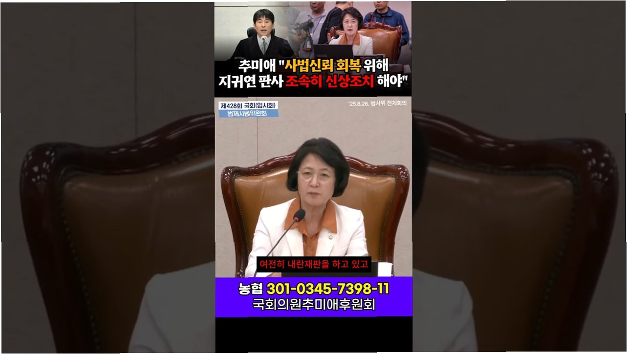 국회 법제사법위원장 추미애 의원이 지귀연 부장판사에 대한 대법원의 신속한 인사 조치를 촉구하며, 사법부에 대한 날카로운 비판을 쏟아냈다.