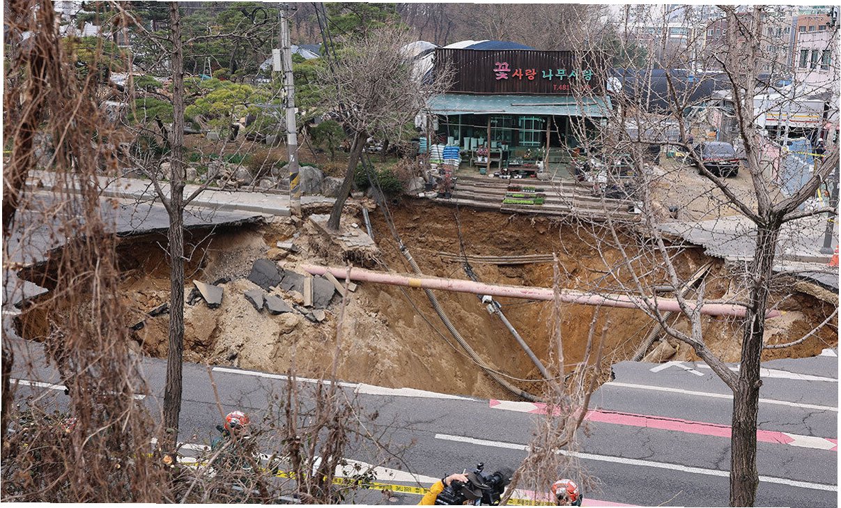 A.현재 정확한 사고 원인은 조사 중입니다. 지하 매설물, 노후된 하수관, 지하수 유출 등 다양한 원인이 있을 수 있습니다.