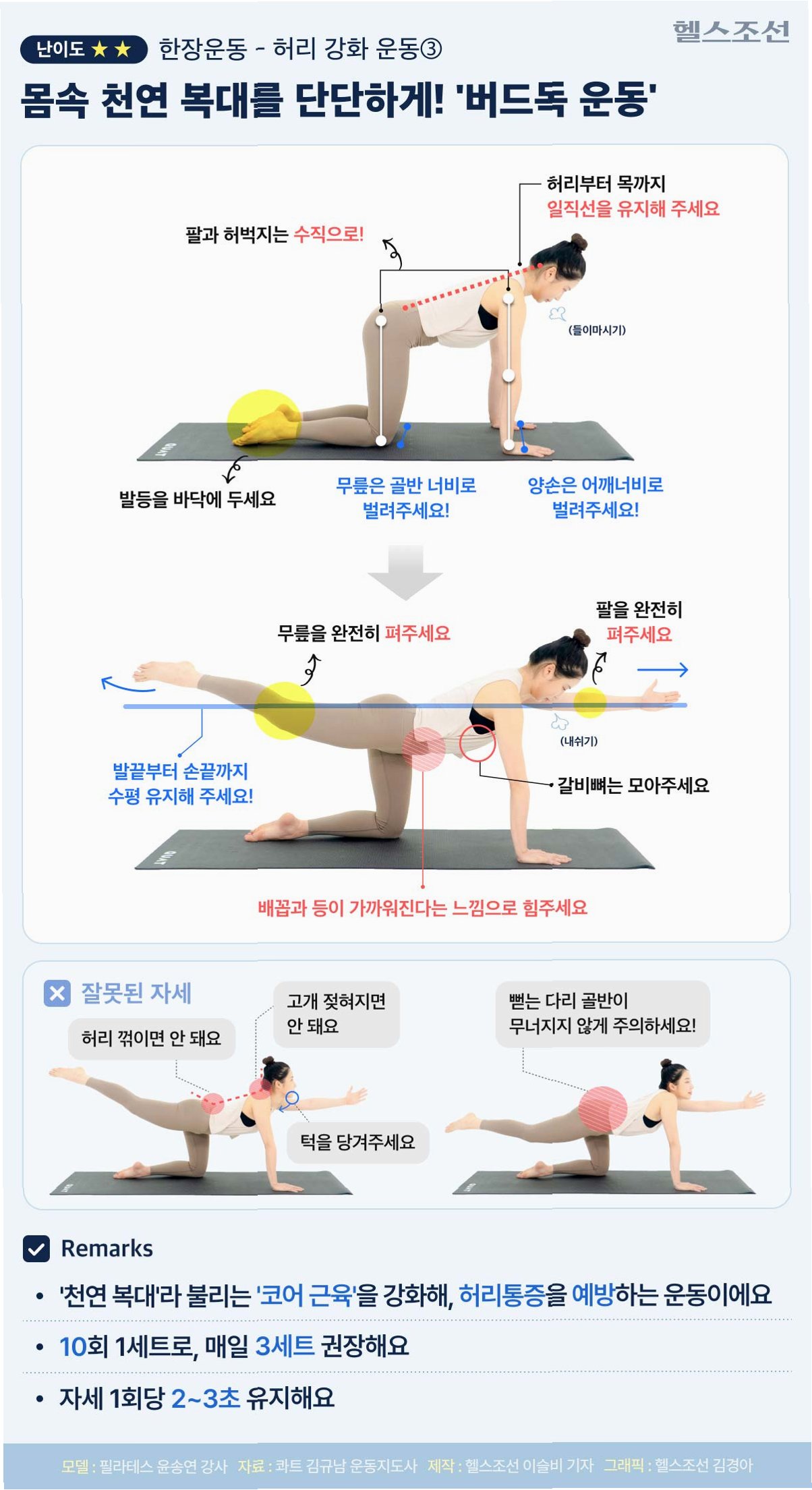 * 엉덩이를 들어 올려 몸을 일직선으로 만듭니다.
