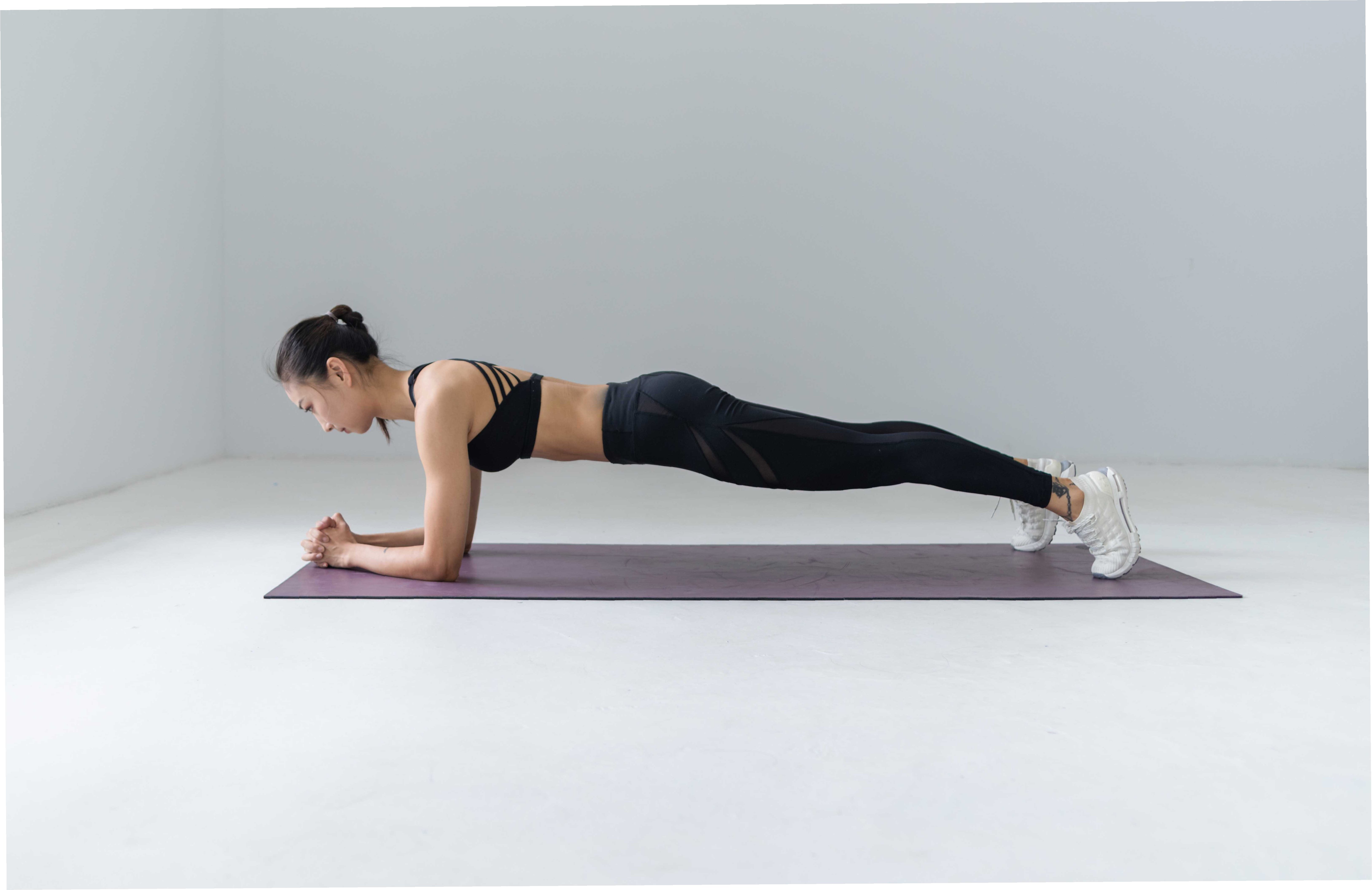 * 바닥에 엎드려 팔꿈치와 발끝으로 몸을 지탱합니다.