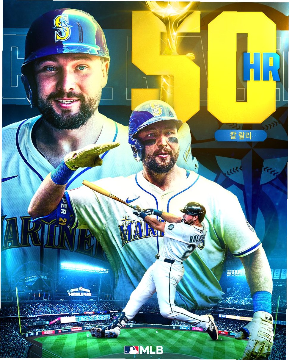 A.시애틀 매리너스의 포수 칼 랄리는 2025 시즌 메이저리그에서 50홈런을 돌파하며 역대급 활약을 펼치고 있는 선수입니다.