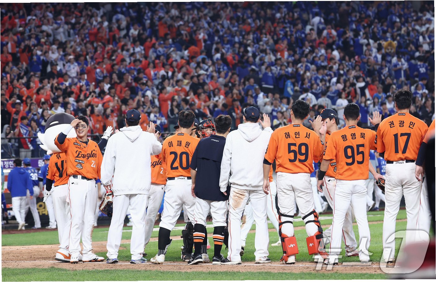 역대 5전 3선승제 플레이오프에서 1차전 승리 팀이 한국시리즈에 진출한 확률은 76.5%에 달합니다. 한화는 유리한 고지를 선점했습니다.
