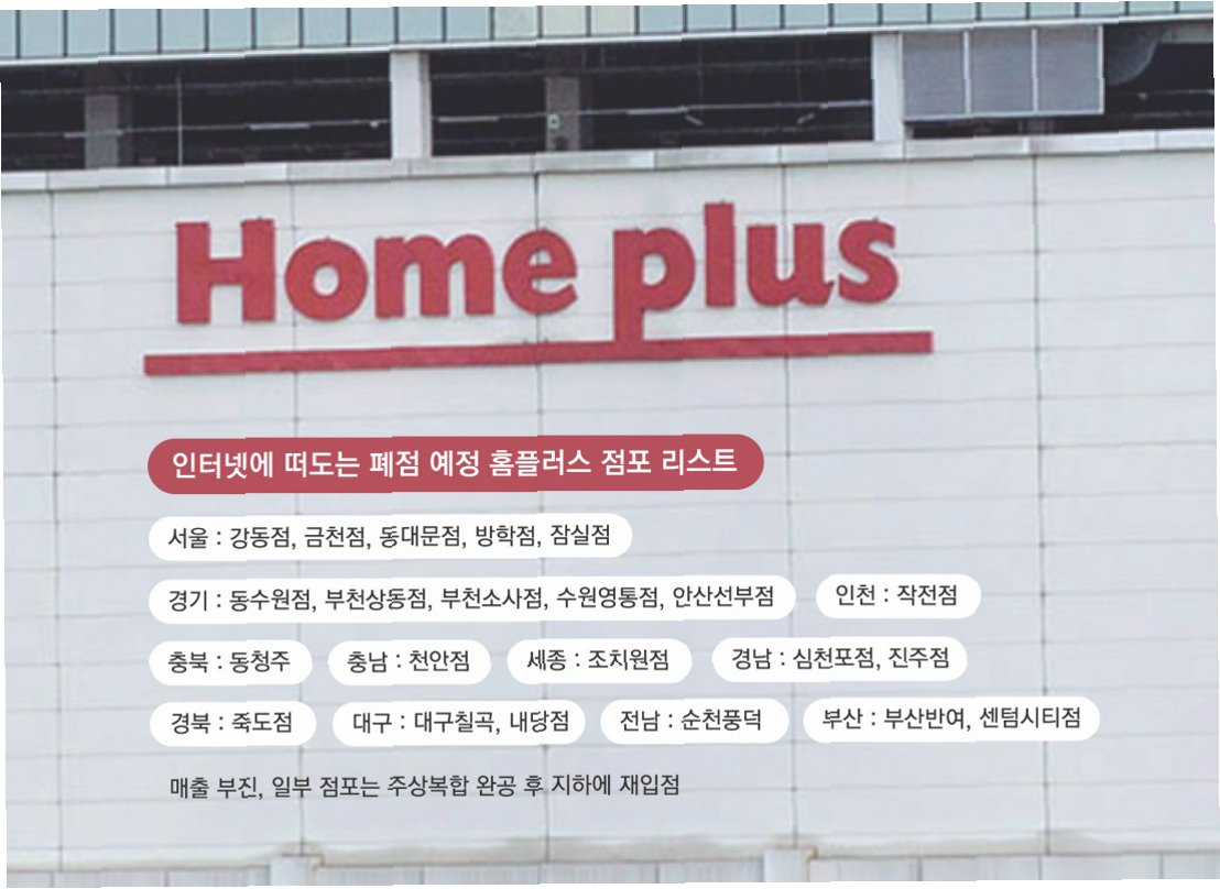 비슷한 시각, 홈플러스는 '긴급 생존 경영' 체제에 돌입한다는 보도자료를 냈습니다. '생존' 대책의 핵심, 수원 원천점을 포함한 15개 점포의 폐점이었습니다. 건물 임대주와의 임대료 조정 협상에 진전이 없는 15개 점포를 없애 적자 폭을 줄이겠다는 겁니다. 이달 초 기준 홈플러스가 운영 중인 122개 점포의 12%가 정리되는 셈입니다.