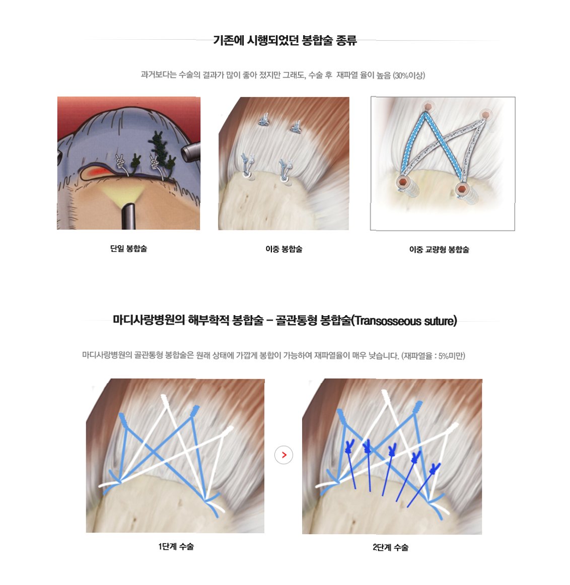 5. 기타 요인: 고령, 당뇨병, 골다공증 등 기저 질환, 그리고 수술 시 봉합 부위의 불량 등도 재파열의 원인이 될 수 있습니다.