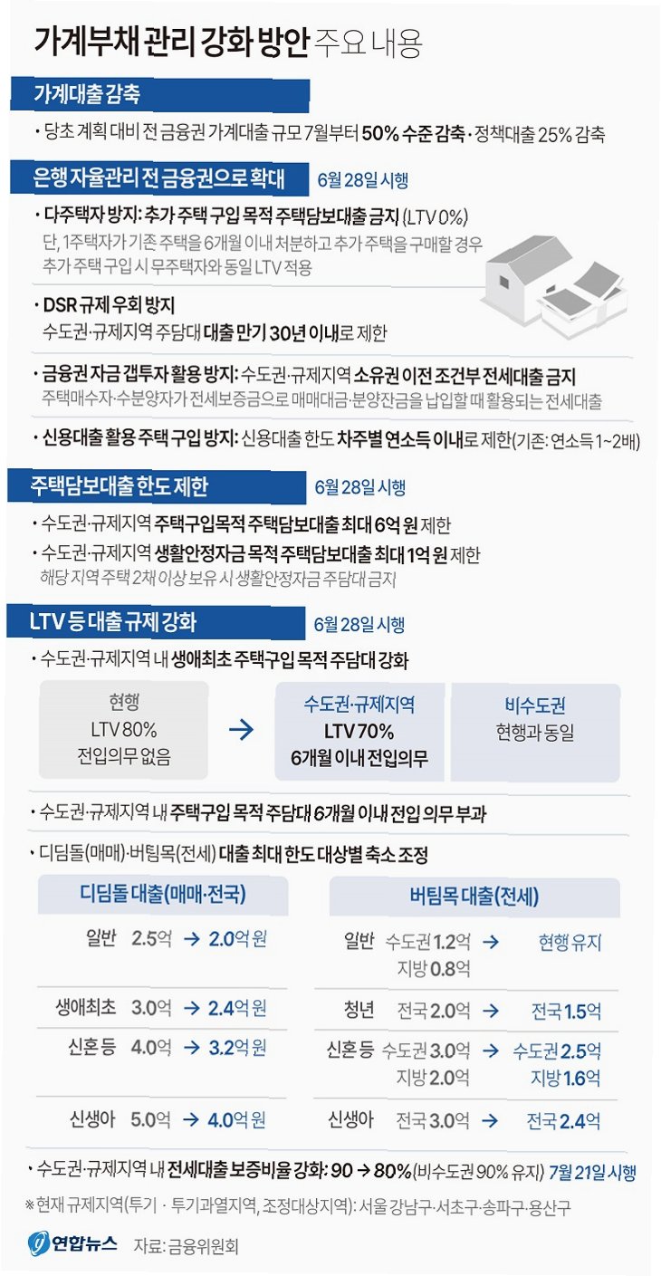 주요 변경 사항: LTV 규제 강화 및 사업자 대출 제한