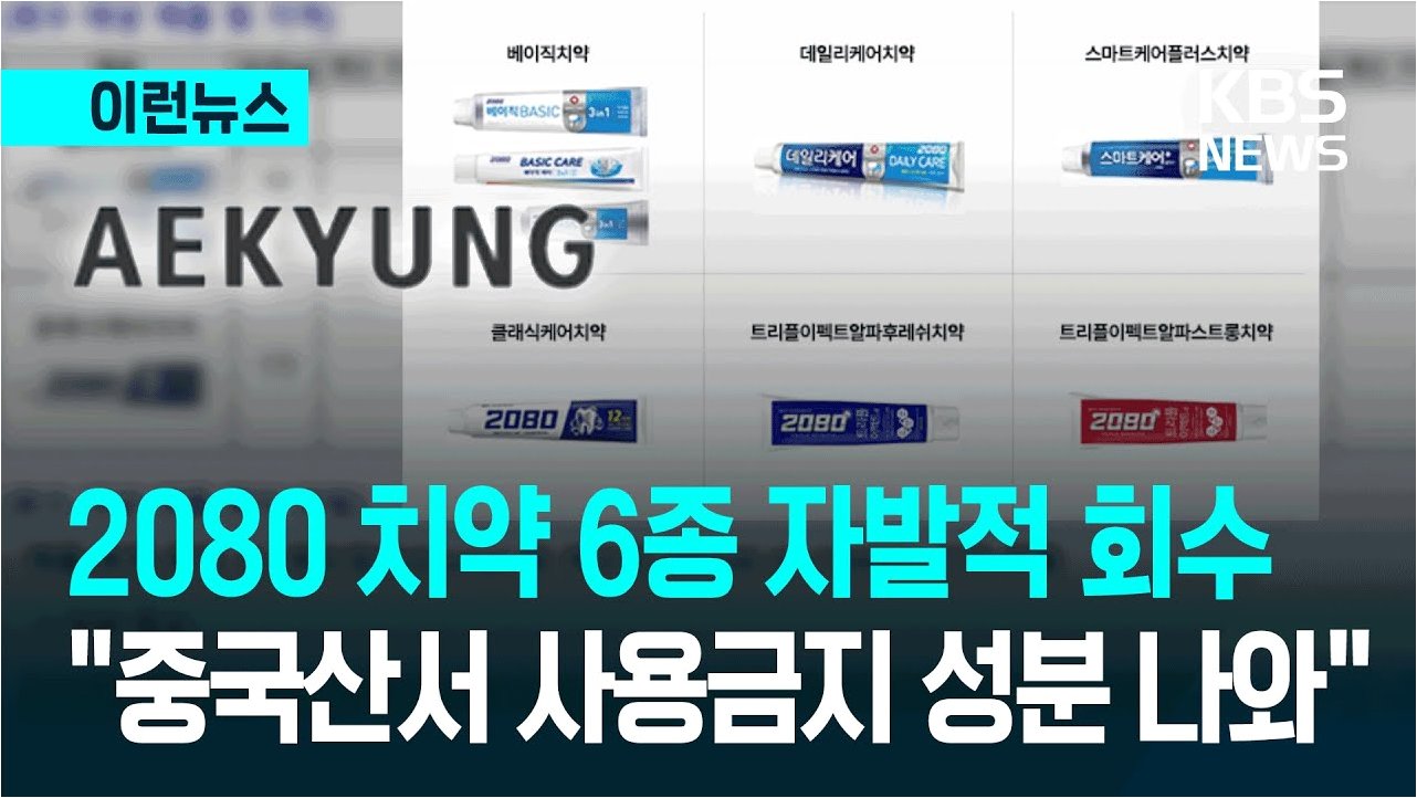 회수 대상 제품은 '2080 베이직치약', '2080 데일리케어치약', '2080 스마트케어플러스치약', '2080 클래식케어치약', '2080 트리플이펙트알파후레쉬치약', '2080 트리플이펙트알파스트롱치약' 등 6가지입니다. 해당 제품들은 중국에서 제조되어 애경산업을 통해 수입 및 판매되었습니다. 소비자들이 사용하는 제품에 대한 세심한 주의와 관리가 필요함을 다시 한번 강조합니다.