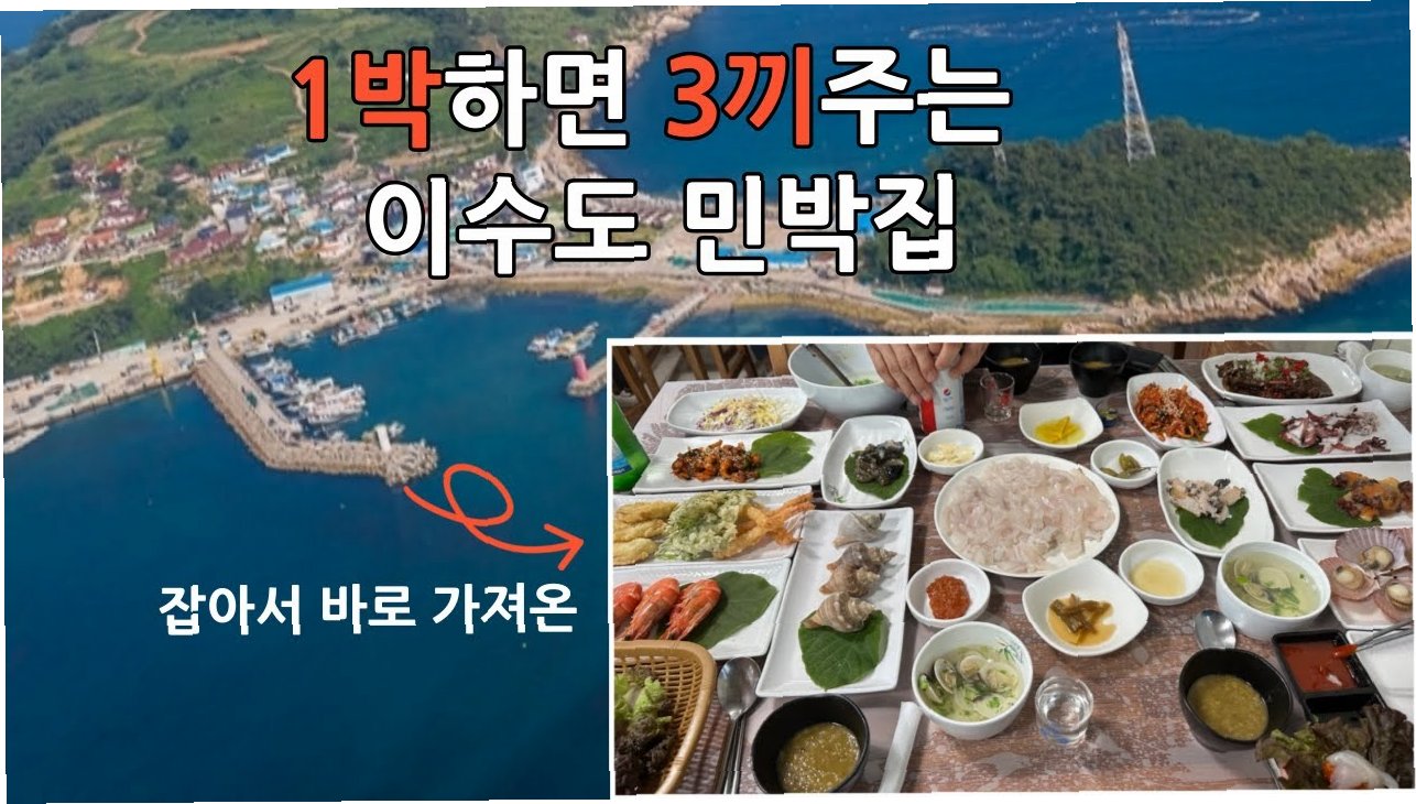 이수도는 24가지 반찬이 쫙 펼쳐지는 1박 3식 민박으로 유명한 섬입니다. 맛있는 음식, 아름다운 풍경, 넉넉한 인심까지, 모든 것을 누릴 수 있는 곳이죠. 지금 바로 이수도로 떠나 잊지 못할 미식 여행을 경험해보세요!