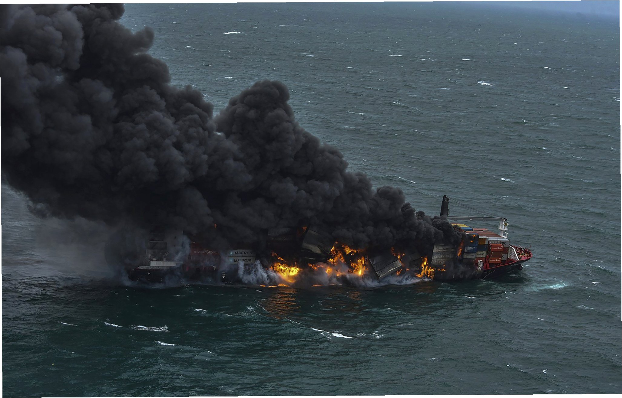 A.초기 화재와 거센 날씨, 침수로 인해 침몰한 것으로 추정됩니다.