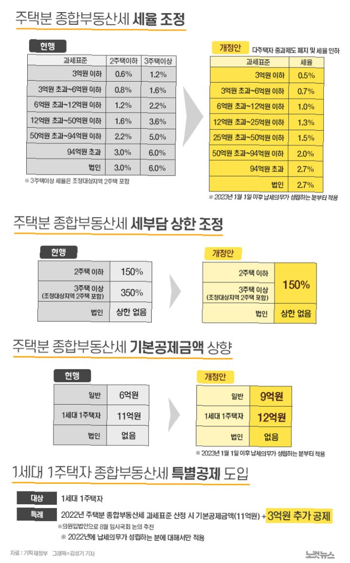 A.현재는 다주택자에게 세금이 더 부과되지만, 개편안은 주택 가격에 따라 세금이 달라집니다. 50억원 주택 보유자는 연간 5천만원의 재산세를 납부하는 미국의 사례를 참고할 수 있습니다.