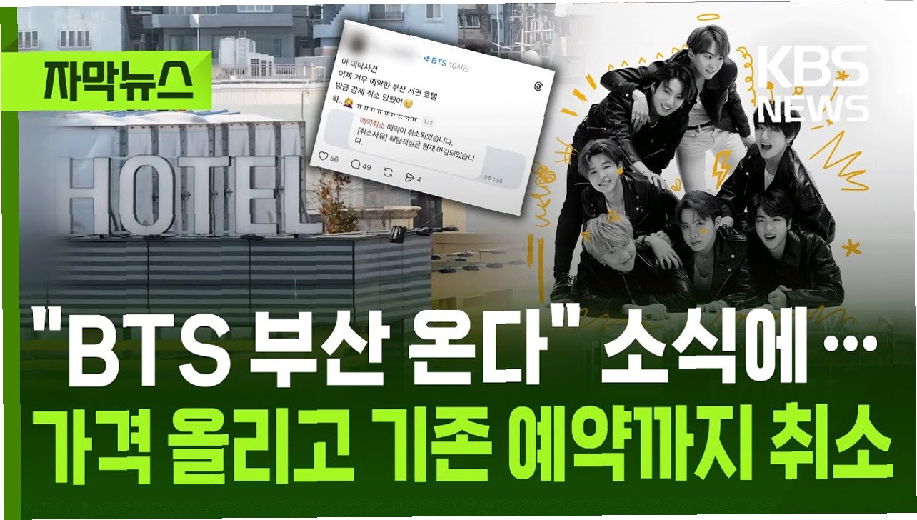 BTS 부산 공연이 예정된 6월 12일과 13일, 숙박 예약 플랫폼을 통해 예약 가능한 숙소는 이미 대부분 매진된 상태입니다. 숙박업소들은 다른 날짜를 확인해달라는 공지를 내걸 정도로, 공연 열기가 숙박 예약 경쟁으로 이어진 모습입니다. 4월 9일 첫 공연을 시작으로 월드투어에 나서는 BTS, 국내에서는 비수도권 지역 중 유일하게 부산에서 공연을 개최합니다. 이는 팬들에게 특별한 의미를 지니며, 숙박 요금 상승으로 이어졌습니다.