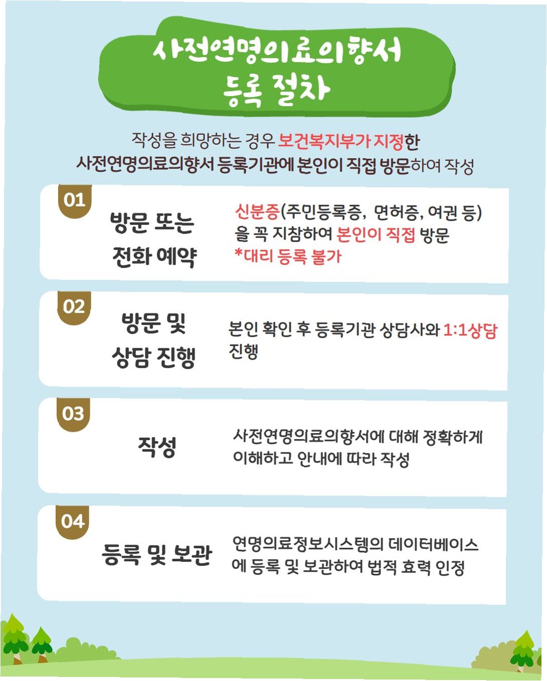 사전연명의료의향서 등록 절차는 다음과 같습니다.