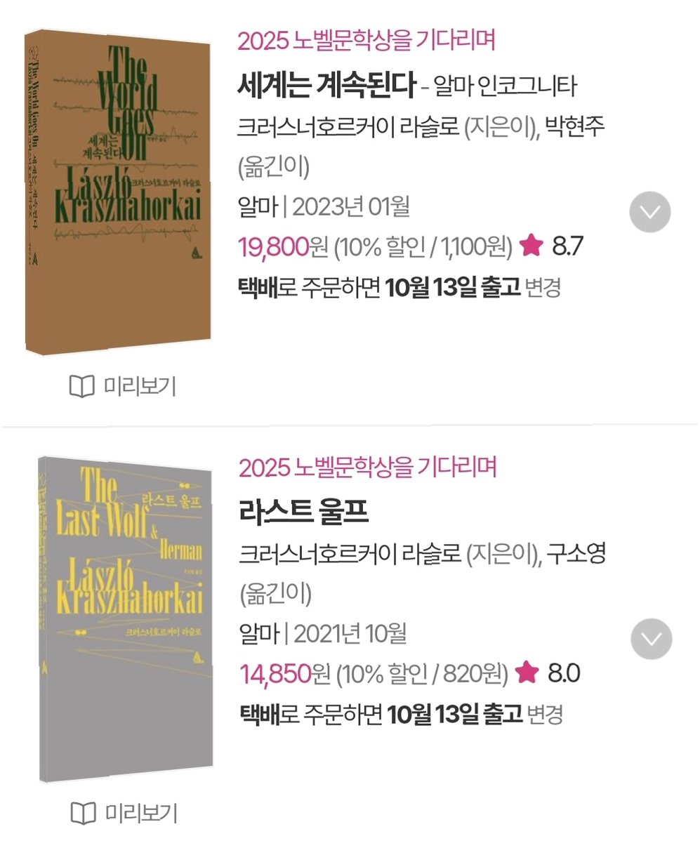 노벨 문학상, '사탄탱고' 작가 크러스너호르커이 열광… 알마출판사의 '뜻밖의 행운'