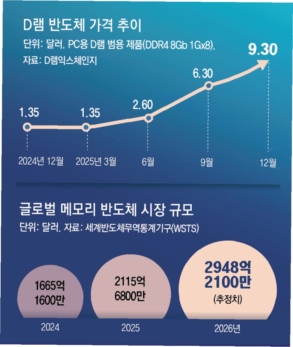 AI 열풍으로 인한 수요 급증과 공급 부족 현상이 심화되면서 메모리 반도체 가격이 천정부지로 치솟고 있습니다. 이에 따라 컴퓨터, 노트북 등 완제품 가격 역시 급격한 인상세를 보이며 소비자들의 부담을 가중시키고 있습니다. 실제로 3주 전 140만 원이었던 조립PC 가격이 200만 원까지 오르는 등, 과거와 비교할 수 없는 가격 상승을 체감하고 있습니다.